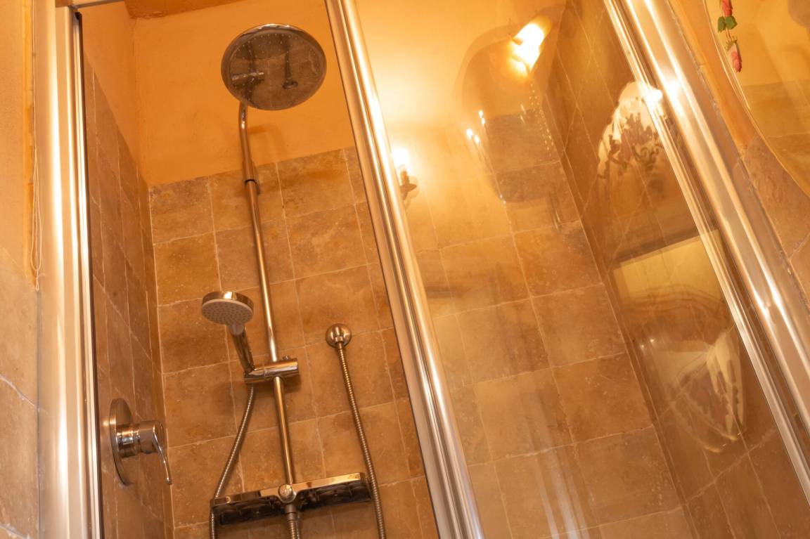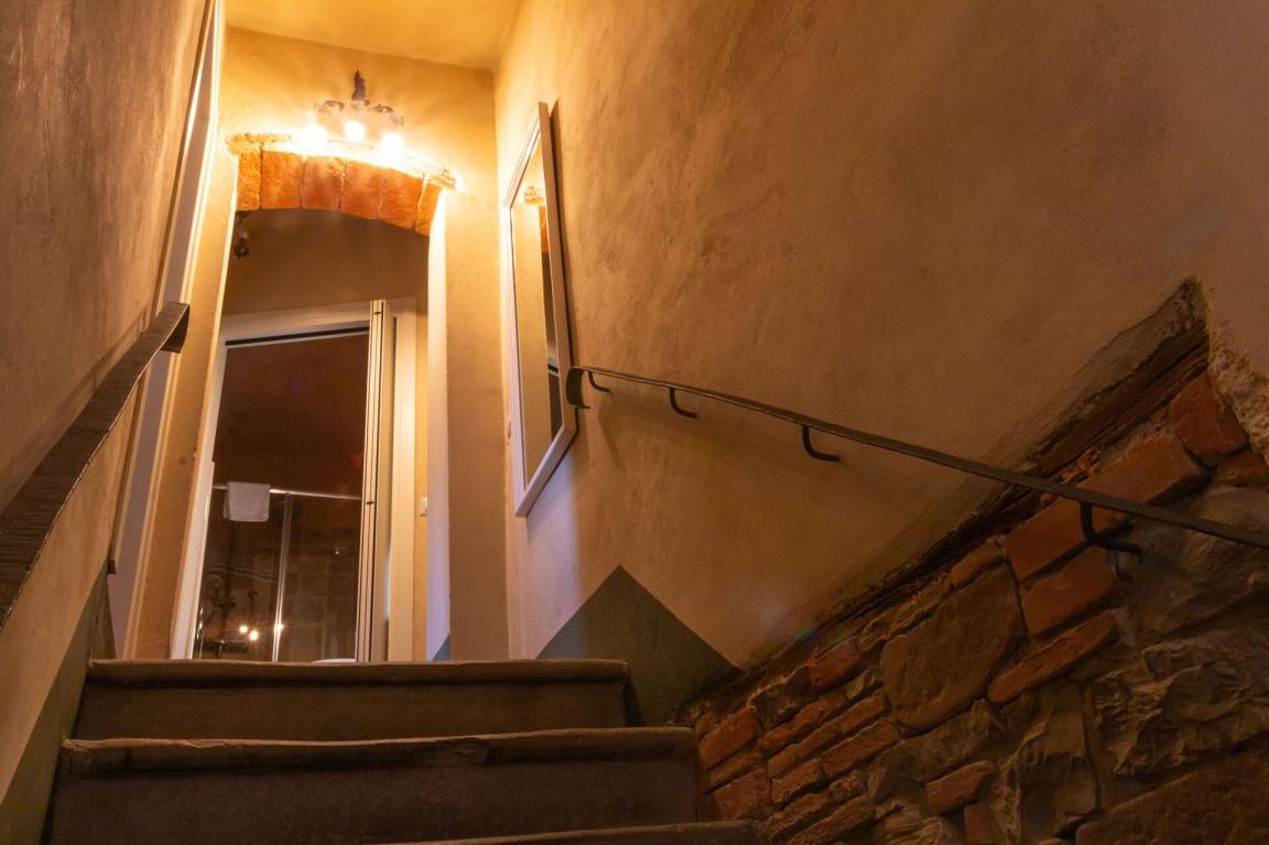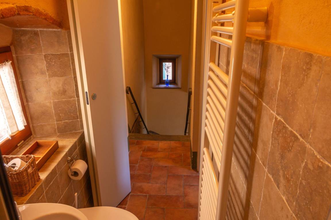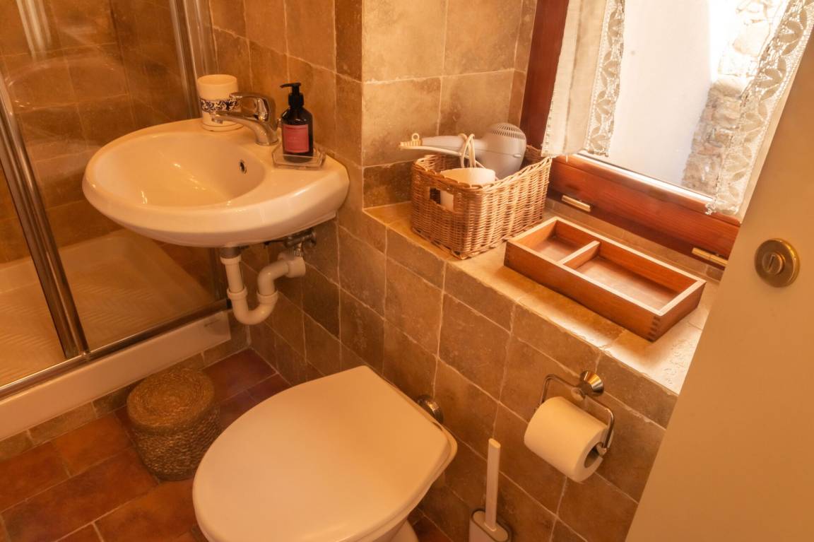 Von der Küche aus führt eine alte Steintreppe zum 2. Stock, mit einem Zweibettzimmer und einem Einzelzimmer, sowie einem Bad.