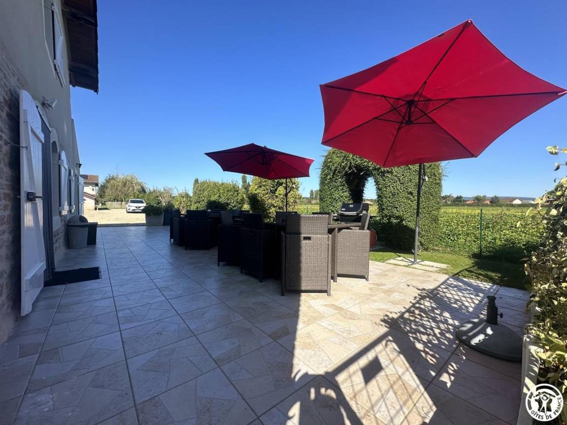 „Accueil particulièrement chaleureux. La maison et ses extérieurs sont très confortables, agréables à vivre et parfaitement équipés. Venez en groupe et profitez de ce très beau lieu pour un séjour dans l'Ain. Un grand merci à nos hôtes !“