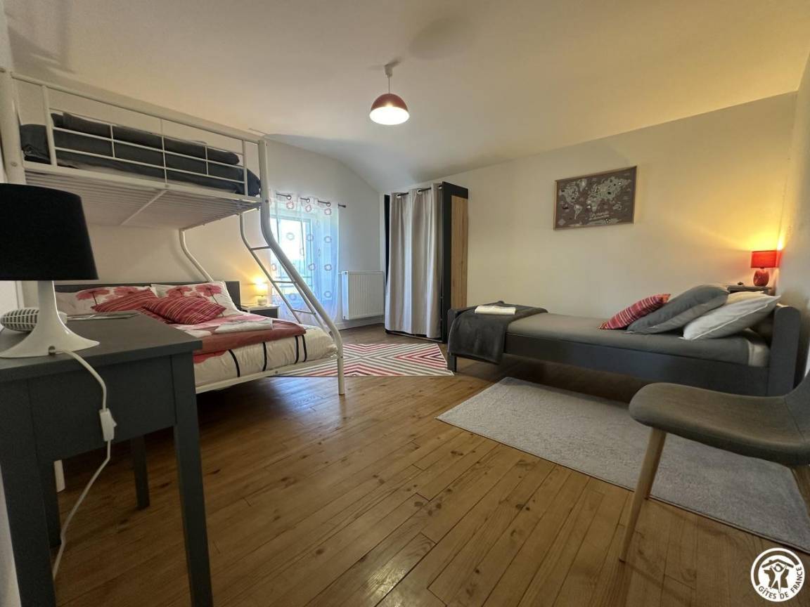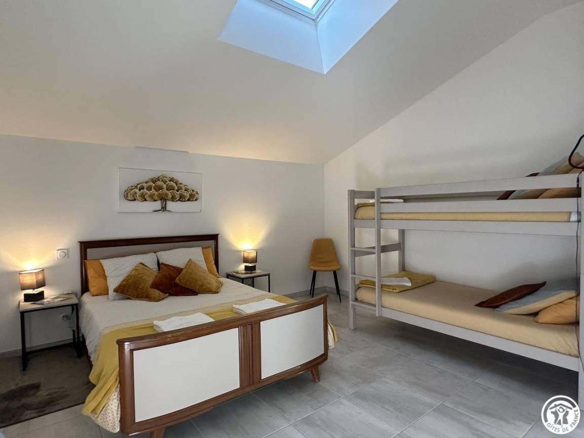 „Un week end de Pâques très agréable. Le gîte est très fonctionnel. Le rez-de-chaussée de chaussée permet à une personne âgée d avoir sa chambre et son confort. Lancuisine est très bien conçue et riche en ustensiles en tout genre. Les chambres du premier permettent de loger à plusieurs sans souciIl y a beaucoup d espace. Les lits faits al arrivée sont un vrai plus. Merci beaucoup“