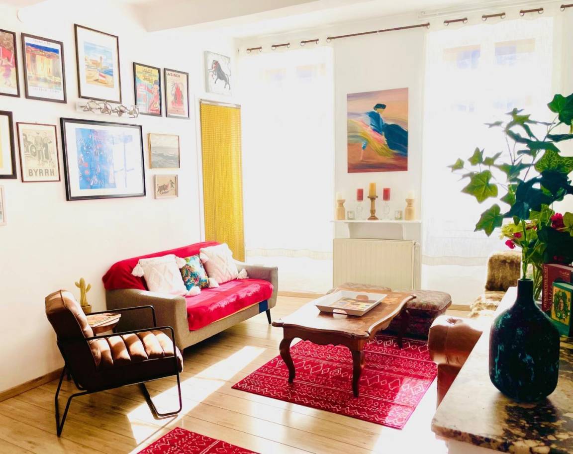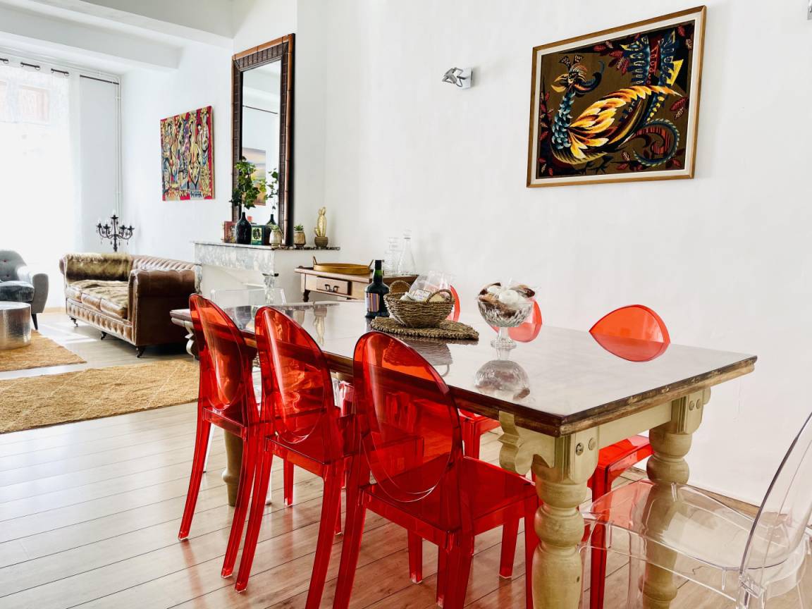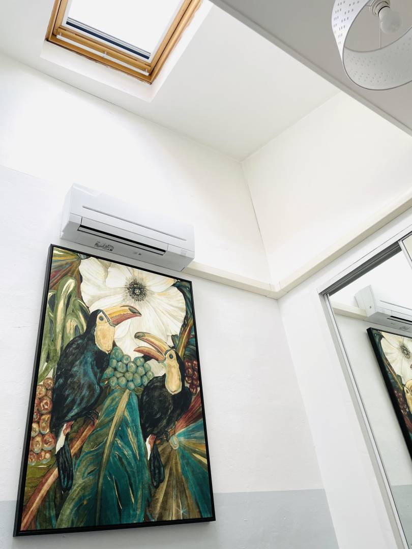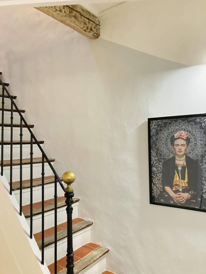 Ail ausgewählt, und Frida Kahlos Präsenz ist in fast jedem Raum spürbar… Erdgeschoss: Eingangshalle. Erdgeschoss: Ein großes Wohnzimmer (mit Stereoanlage), Sofa, Bar und Essbereich; eine Lounge mit Fernseher; eine Küche; ein Duschbad (WC). Obergeschoss: Ein großes Schlafzimmer (mit einem Doppelbett und einem Einzelbett) mit eigenem Duschbad und WC. Aus baulichen Gründen gibt es ein Schlafzimmer mit hohem Dachfenster (mit einem Doppelbett); ein Schlafzimmer (mit drei Einzelbetten); und ein Badezimmer (WC). Alle Schlafzimmer sind klimatisiert. Die Treppe in diesem Altbau ist etwas steil.