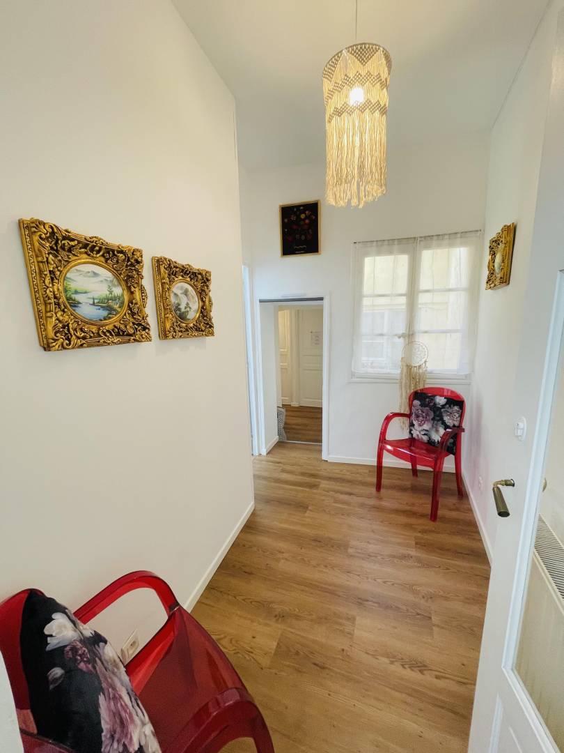 „Espace confortable propreté et déco ok, par contre rentrer au garage seul est impossible avec une berline, et escaliers très escarpés difficiles pour personnes âgées.“