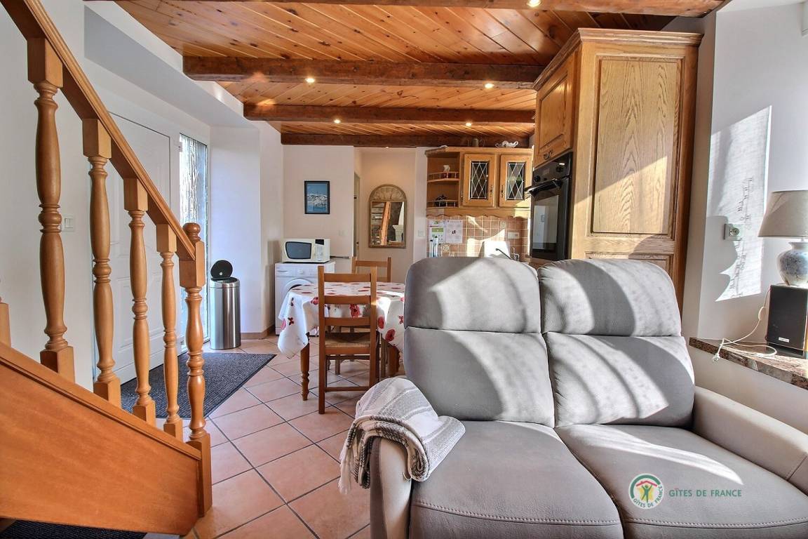 Ihre Ferienwohnung umfasst im Erdgeschoss: Einbauküche, Essecke, Wohnzimmer, Bad mit Dusche, WC. Etage: 1 Schlafzimmer (1 Doppelbett 160x200), ein Zwischengeschoss (1 Einzelbett 90x190). Babyausstattung auf Anfrage (Bett und Stuhl). Private Terrasse (25 m²) und Innenhof (40 m²).