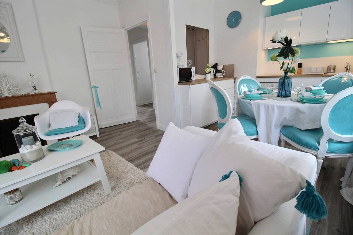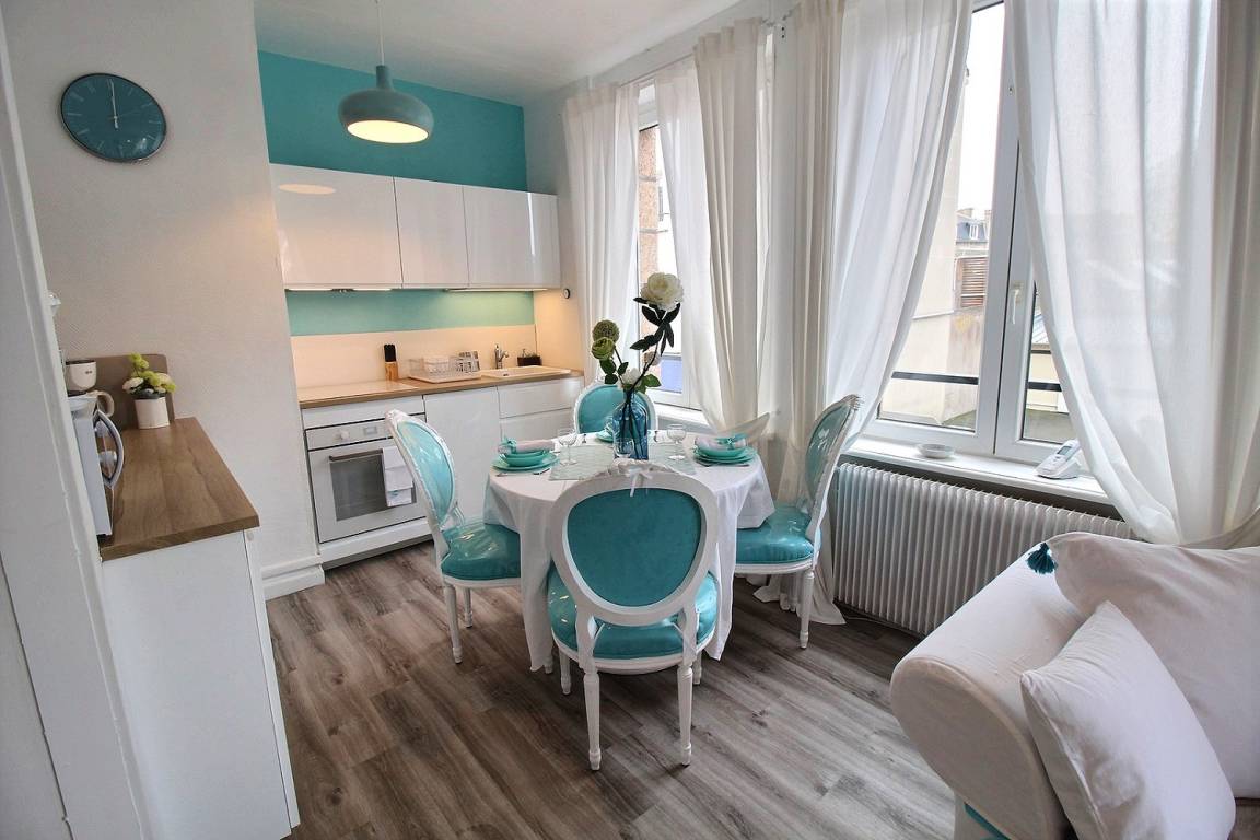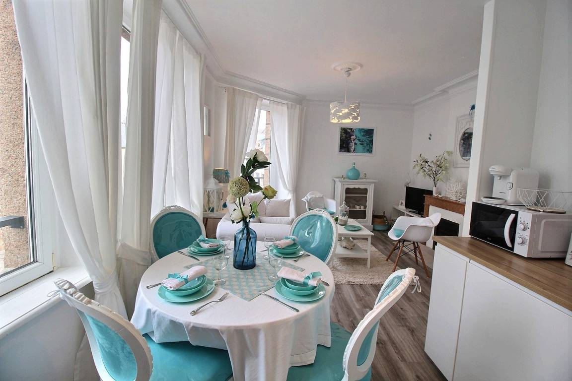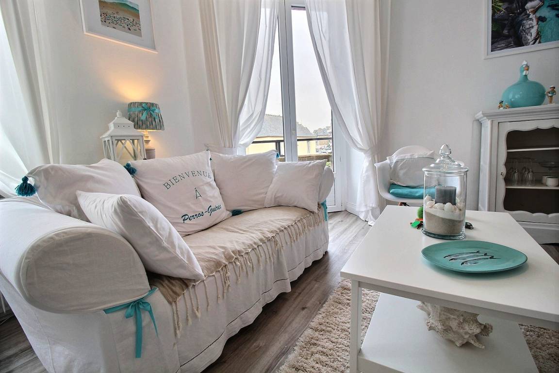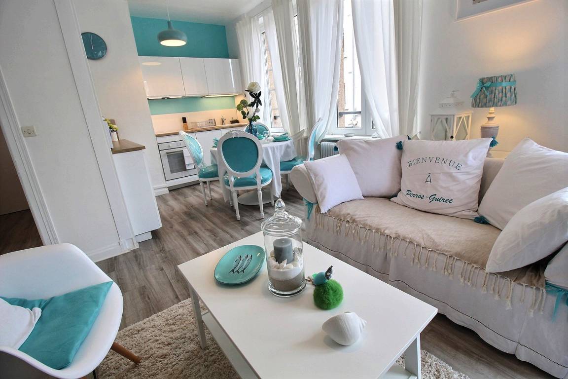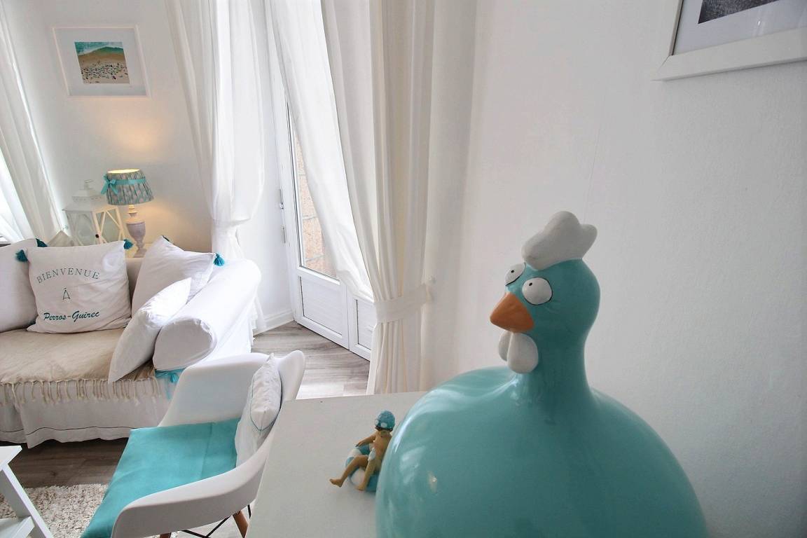„Appartement très fonctionnel joliment décoré avec goût et simplicité, idéalement situé en plein centre de Perros-Guirec tout en étant calme“