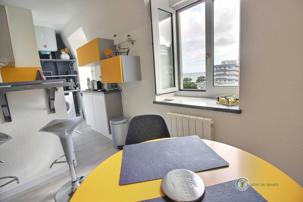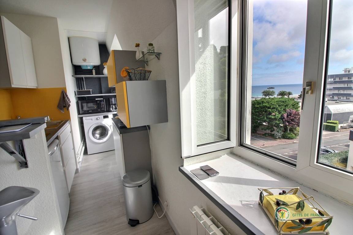 „Petit appartement bien aménagé, fonctionnel, propre, aucun bruit, où l'on aperçoit la mer. Accueil très agréable de la proprietaire.“