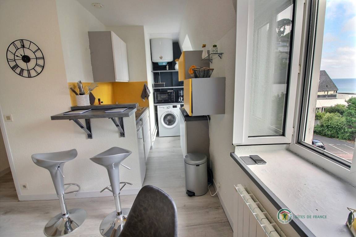 „Chaleureux accueil de Anne-Marie avec des crêpes maison, un bon cidre local, tout ce qu’il faut pour être « comme à la maison ». En plus, Anne-Marie nous donne de très bons conseils sur les restaurants, activités et lieux à visiter. L’appartement est très joliment décoré, très pratique (il y a vraiment tout ce qu’il faut), une superbe vue sur la mer et il est facile de se garer. Nous avons passé 15 jours magnifiques ! Merci Anne-Marie“