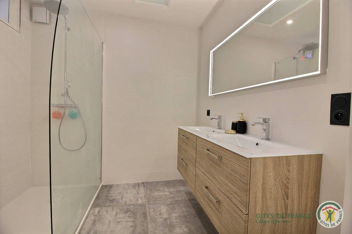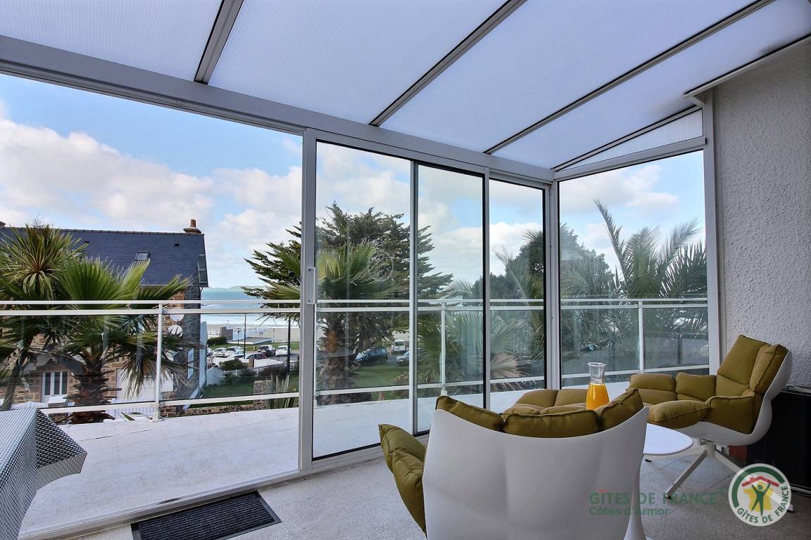 „Gîte idéalement situé, avec vue sur une mer émeraude (lorsque le temps le veut bien), spacieux, dotée d'une vaste véranda où nous avons pris tous nos repas avec le sentiment d'être constamment dehors. Literie et sanitaires d'excellente qualité. Nous recommandons chaudement.“