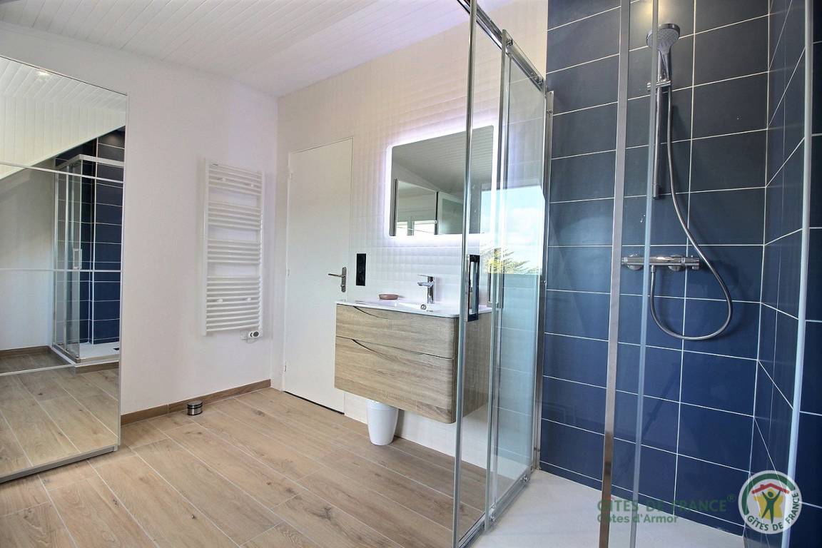 Ihre Ferienwohnung umfasst im Erdgeschoss: Eingangsbereich, Wohnzimmer mit direkter Verbindung zur Veranda und zur Terrasse mit herrlichem Meerblick, Einbauküche, 1 Schlafzimmer (1 Bett 160x200) mit Zugang zur Terrasse, Duschbad (ebenerdige Dusche), separates WC, Waschküche. Obergeschoss: 3 Schlafzimmer: 1 Schlafzimmer mit herrlichem Meerblick (1 Einzelbett), 1 Schlafzimmer zur Hofseite (1 Einzelbett) und ein Schlafzimmer zur Hofseite (1 Bett 160x200), Duschbad mit Meerblick (Dusche) und separates WC. Terrasse von 30 m², Grundstück von 750 m². Parkplatz auf dem Grundstück.