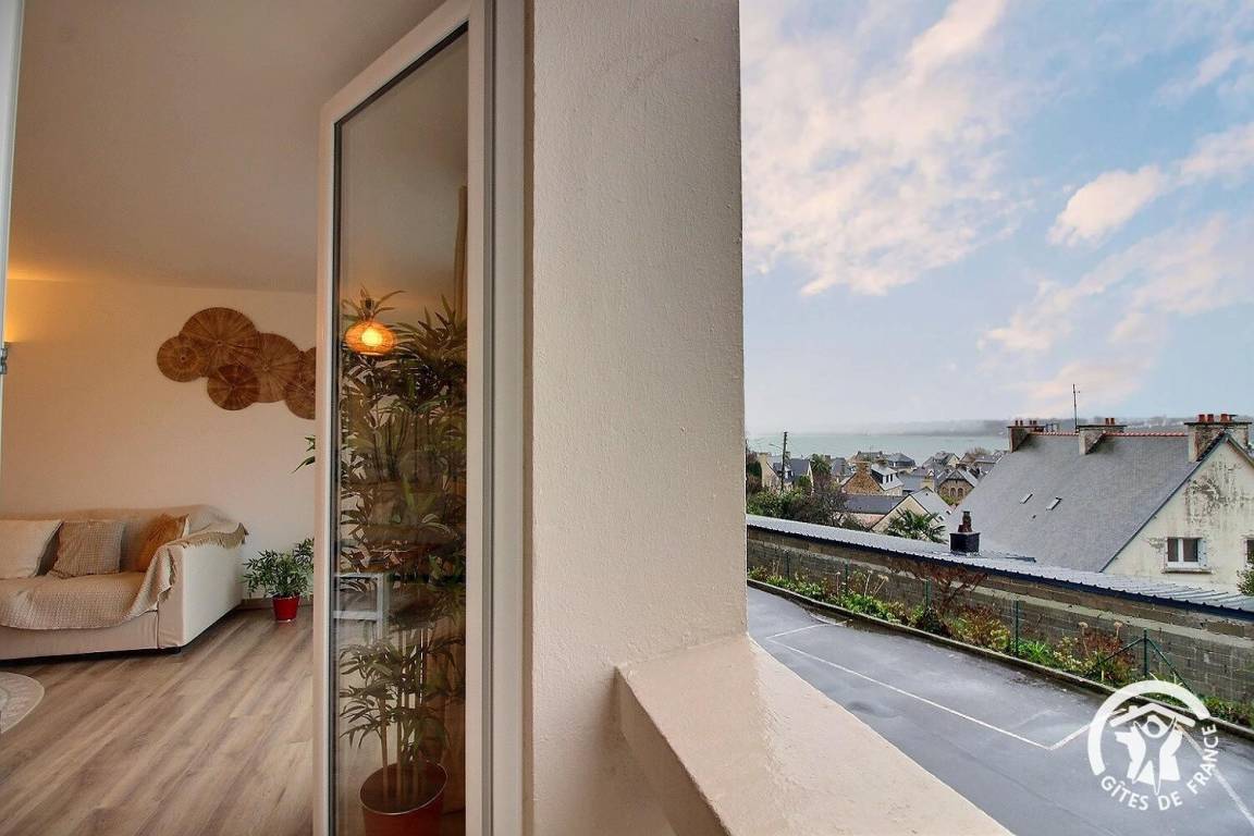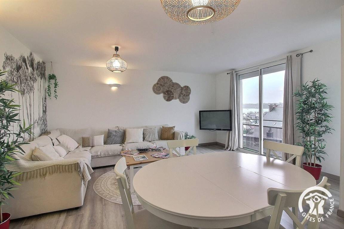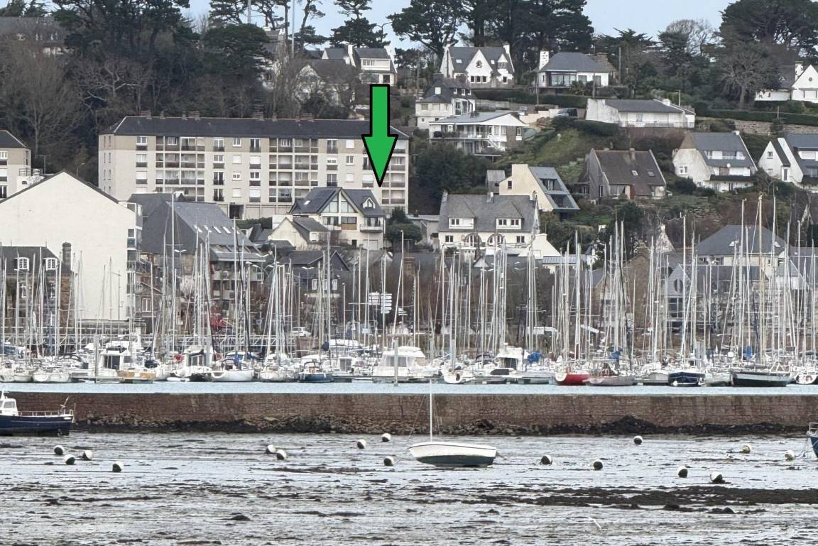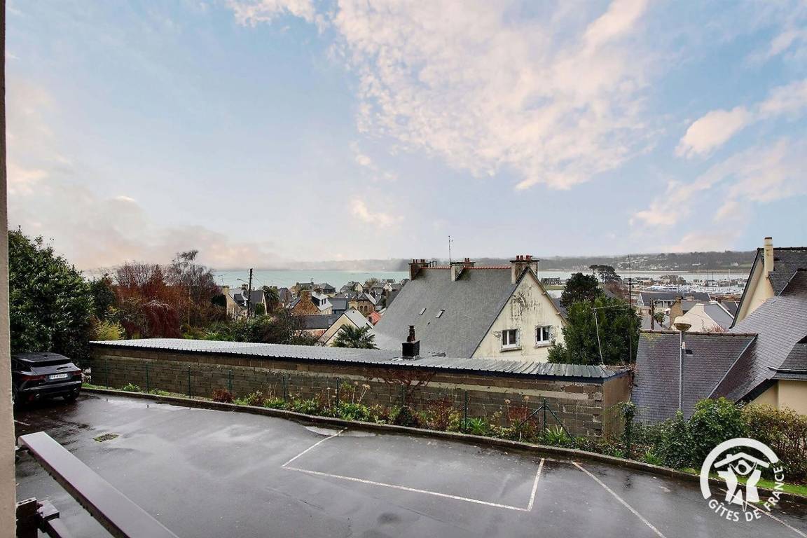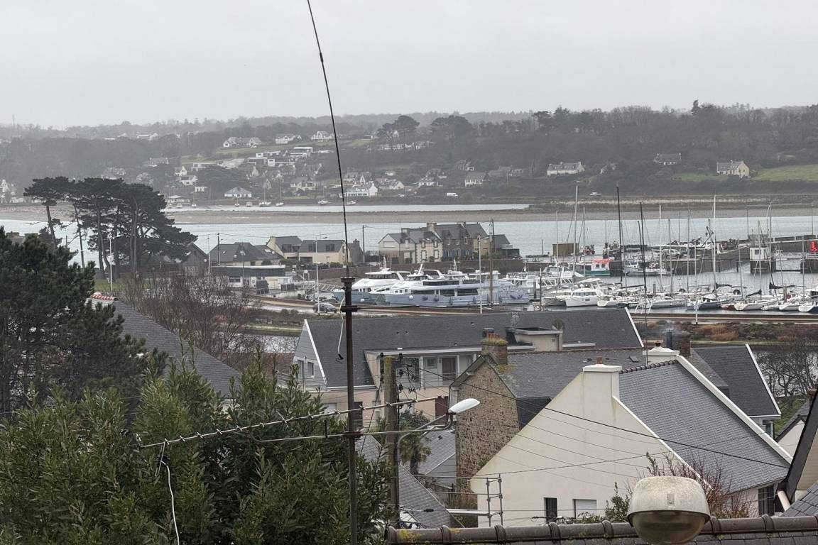 - ein Wohn-/Esszimmer mit Zugang zu einer kleinen, 4,5 m² großen privaten Terrasse mit Blick auf den Hafen und die Bucht von Perros-Guirec,