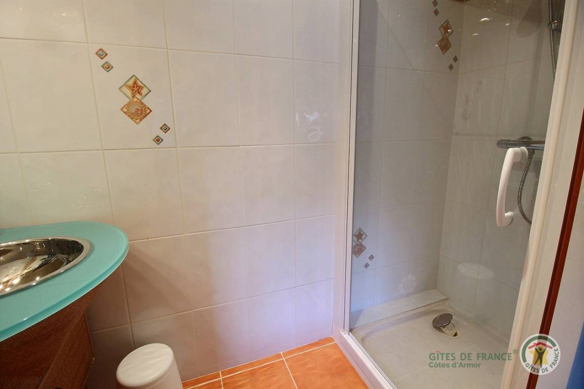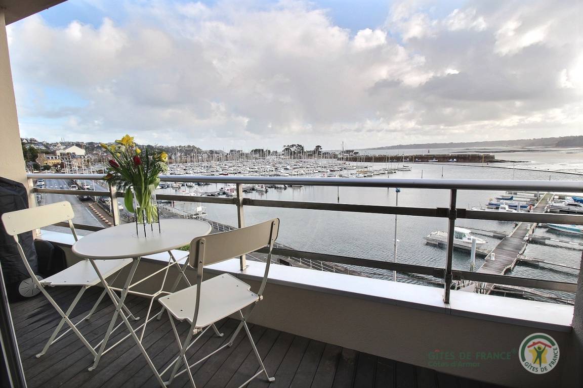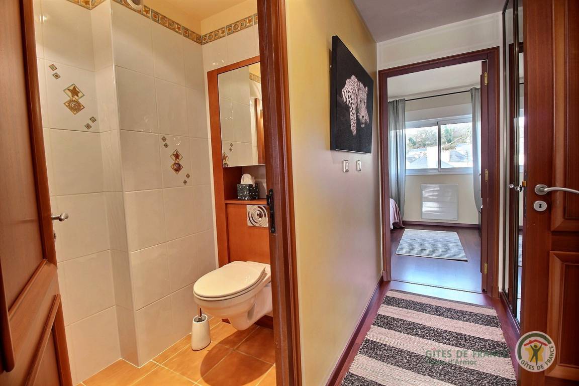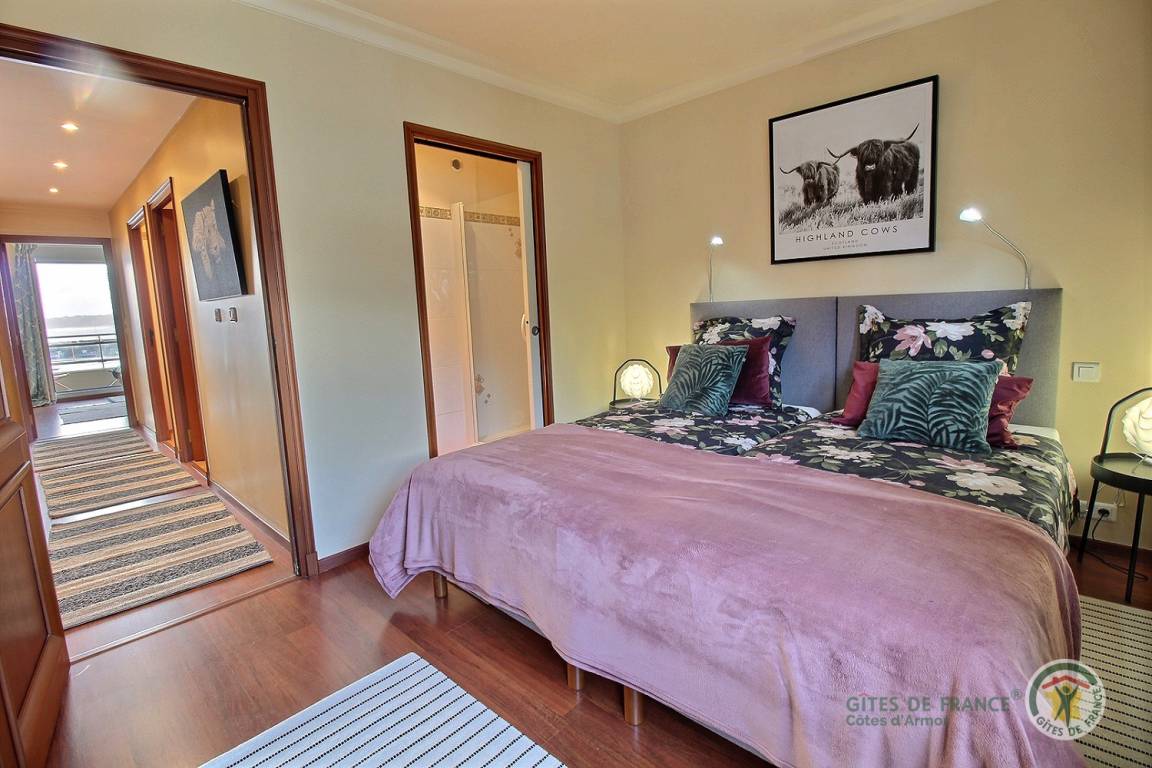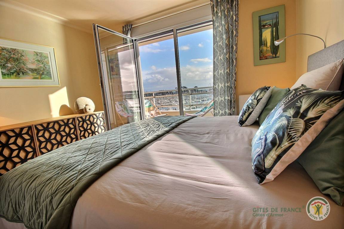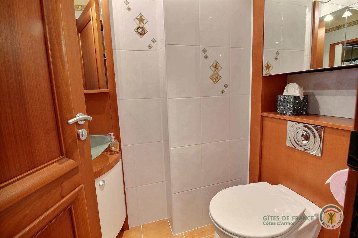 Großer Wohnraum mit Küche, Wohnzimmer, Wohnzimmer mit Blick auf den Hafen, Zugang über einen großen Flur: Badezimmer mit Dusche, separates WC mit Waschbecken, 2 Schlafzimmer: Das 1. Schlafzimmer verfügt über 1 180 x 200 cm großes Bett und verfügt über eine kleine Terrasse (Zugang). (durch das große Erkerfenster) mit Liegestühlen ausgestattet, so dass Sie den Blick auf den Yachthafen von Perros-Guirec genießen können, und das 2. Schlafzimmer mit eigenem Bad (Dusche und Waschbecken) besteht aus 2 Einzelbetten im Format 90 x 200.