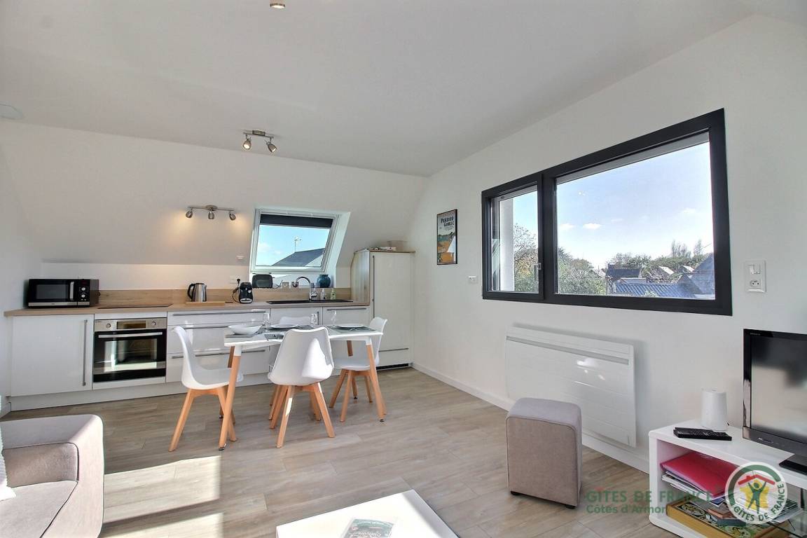 „Appartement fonctionnel, bien équipé, propre, calme. A proximité d'un supermarché/pharmacie et non loin du centre de Perros-Guirec (à pied). Idéal pour les randonnées pédestre à l'entour (outre le littoral, GRs, chemins de campagne, petites routes...). Le propriétaire est à l'écoute et bienveillant. Je recommande ce gîte.“