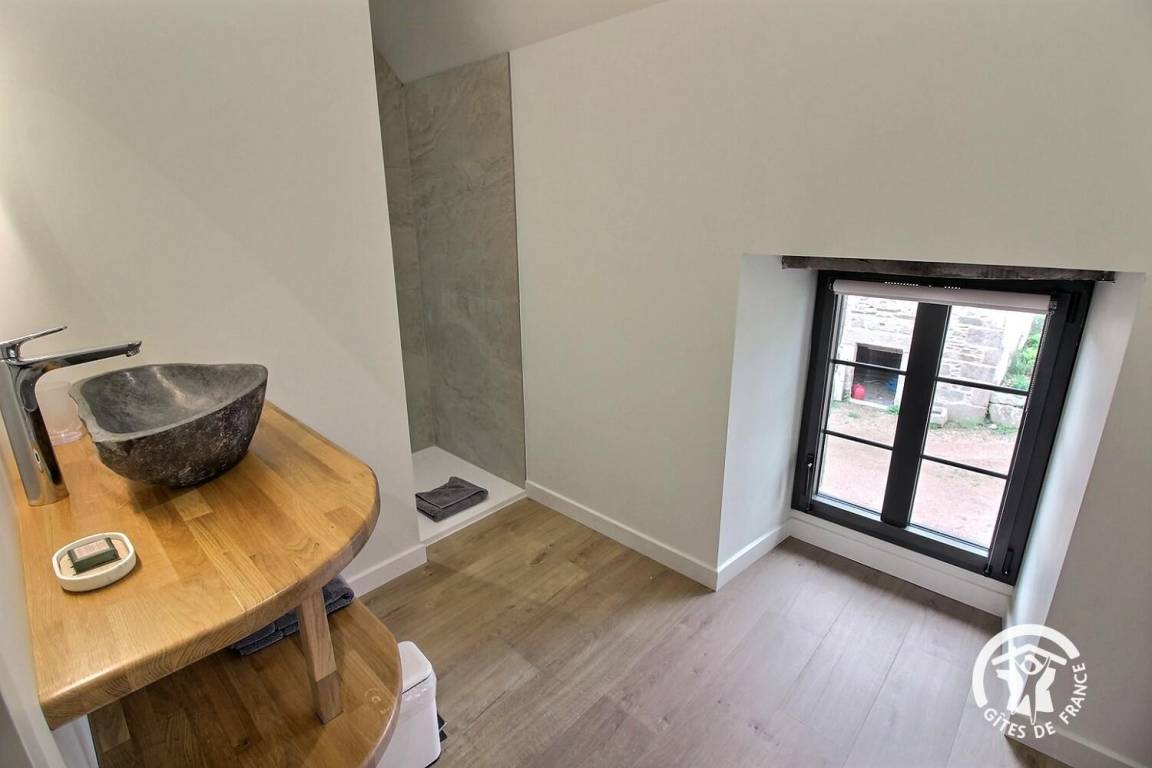 Manon und David heißen Sie auf ihrem charmanten Anwesen, einem wunderschön restaurierten Bauernhaus, willkommen. Sie bieten fünf komfortable Unterkünfte für zwei bis acht Personen. Ich spreche vom Cottage, Le Cottage, mit seiner niedrigen Eingangstür – eine Anspielung auf die bescheidene Statur der Bretonen von einst –, die Sie garantiert zum Lächeln bringt und zur Authentizität des Ortes beiträgt.
