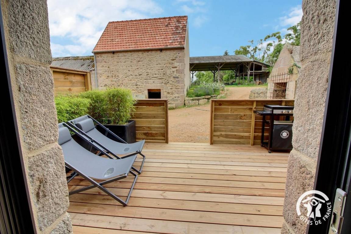 Private Holzterrasse auf der Südseite mit Plancha-Grill.