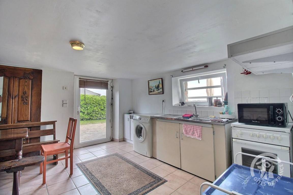 Sommerküche mit Waschmaschine, Tischfußball, Badezimmer (italienische Dusche) und separates WC: direkter Zugang zur Terrasse.