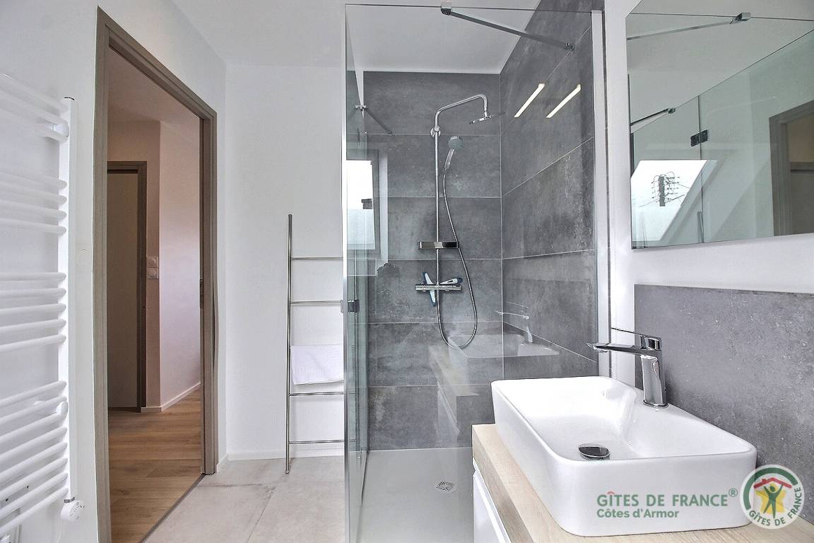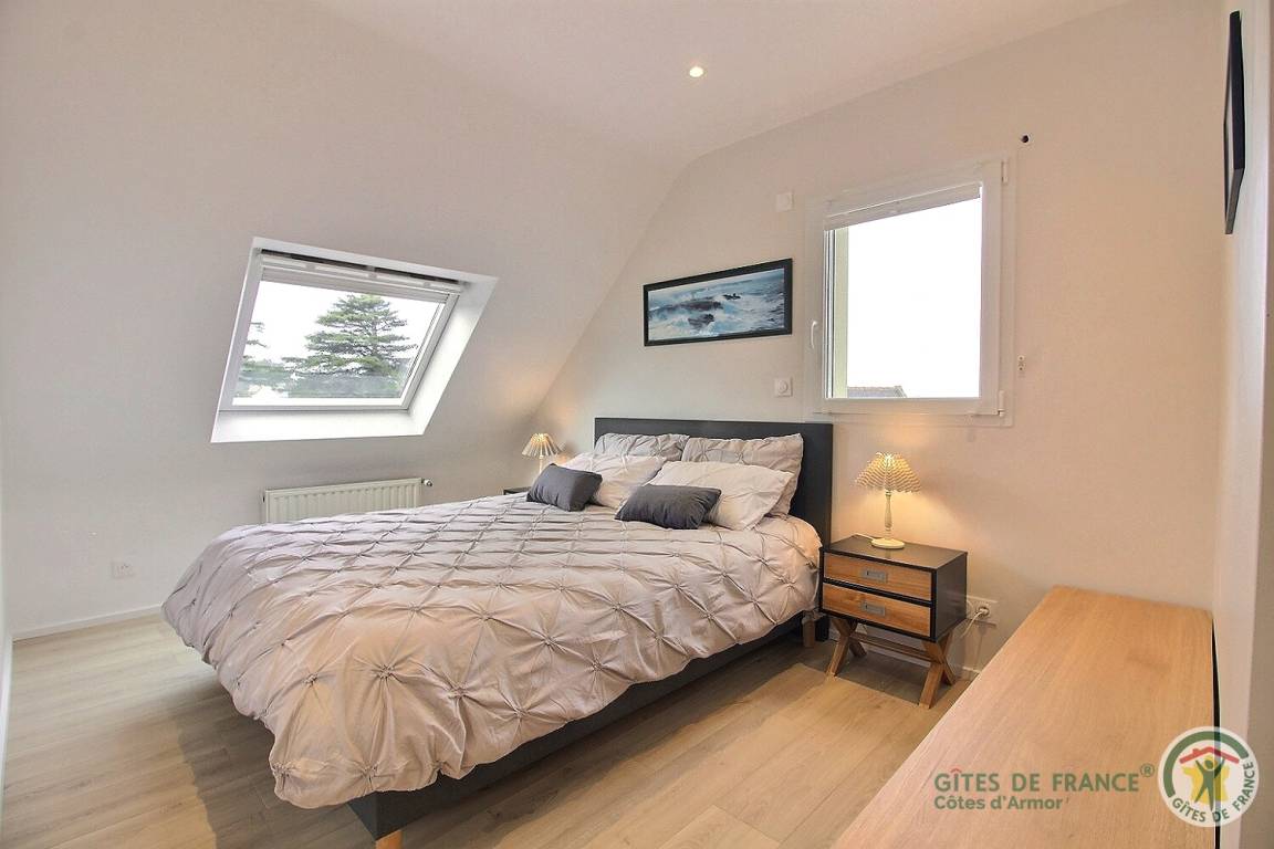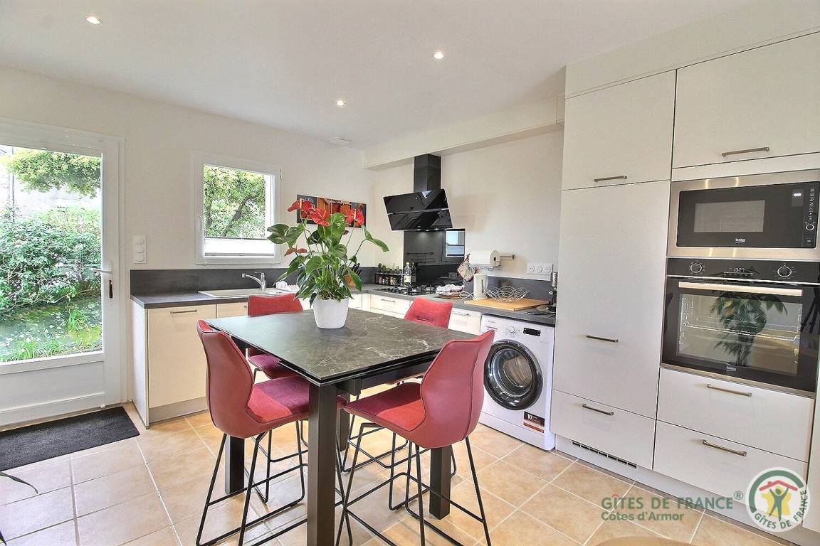 „Gîte idéalement situé pour découvrir la magnifique côte de granit rose et parcourir le GR34. Proche des commerces et de la plage. Bien équipé avec de nombreux rangements.“