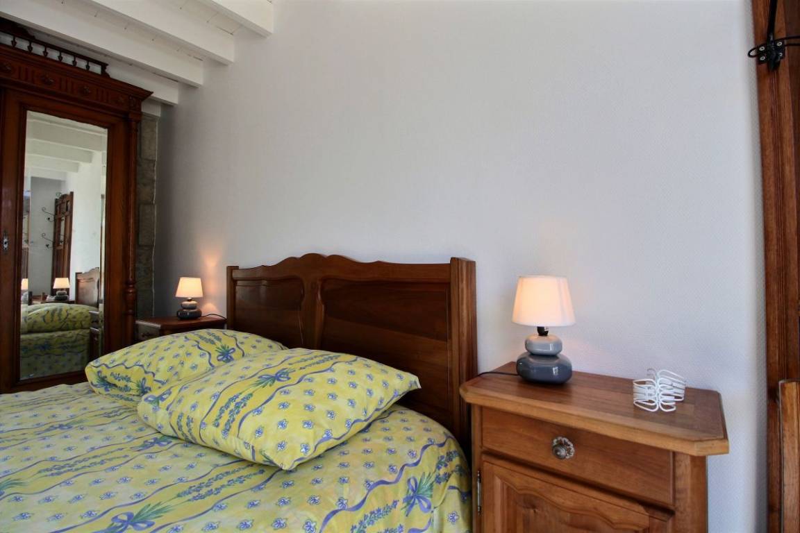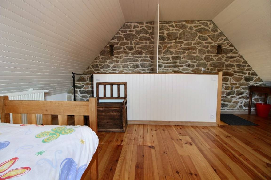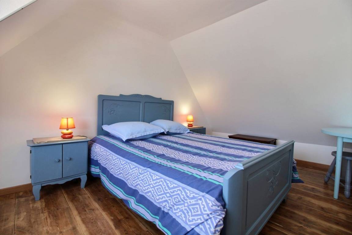 Dieses Ferienhaus bietet: Im Erdgeschoss: Ess-Wohnzimmer mit Holzofen, ausgestattete Einbauküche. In einer Erweiterung: 1 Zimmer (1 Bett für 2 Personen 140x190), Bad mit Dusche und WC. Im Obergeschoss der Erweiterung: 1 Zimmer (1 Einzelbett 90x190). Im Obergeschoss des Hauses: 2 Zimmer (1 Bett für 2 Personen 140x190) (1 Bett für 2 Personen 140x190), WC mit Waschbecken, Ankleide-Ecke. Innenhof von 120 m² zum Abstellen der Fahrzeuge, Garten von 70 m² mit kleiner Terrasse von 9 m². Kleine Veranda von 6 m² am Eingang des Hauses.