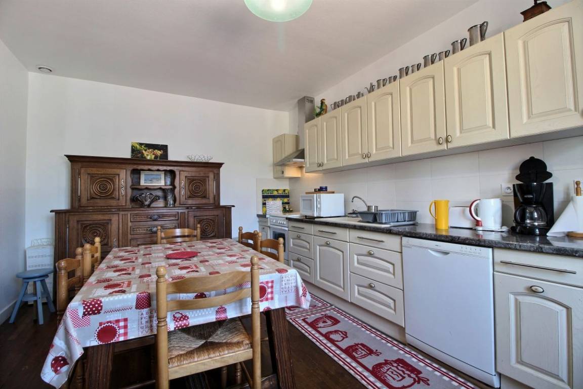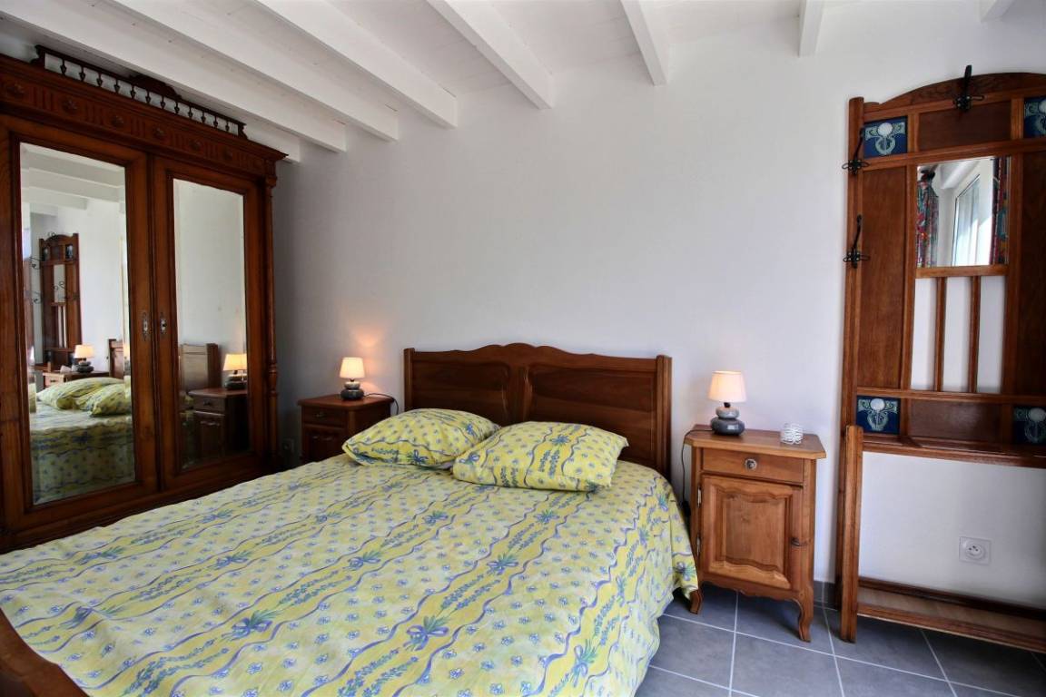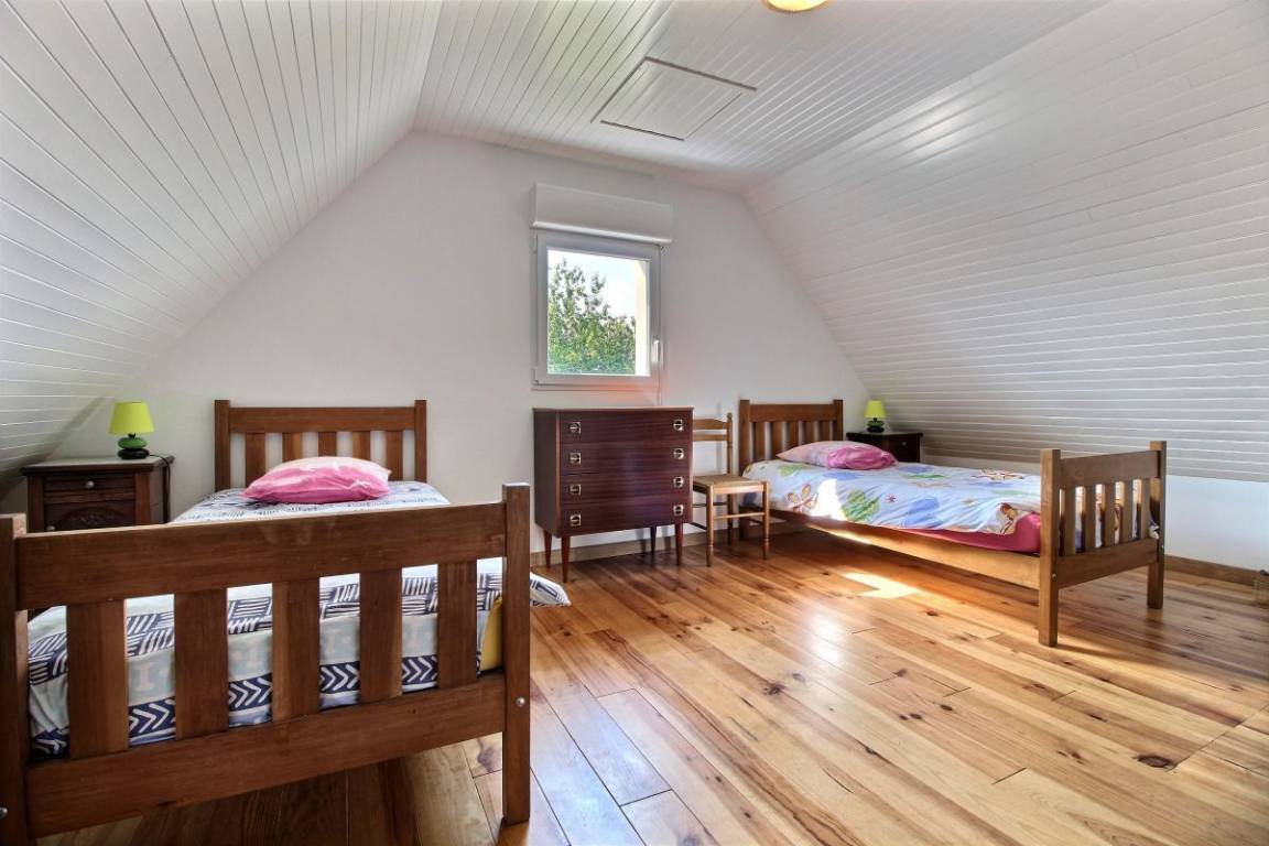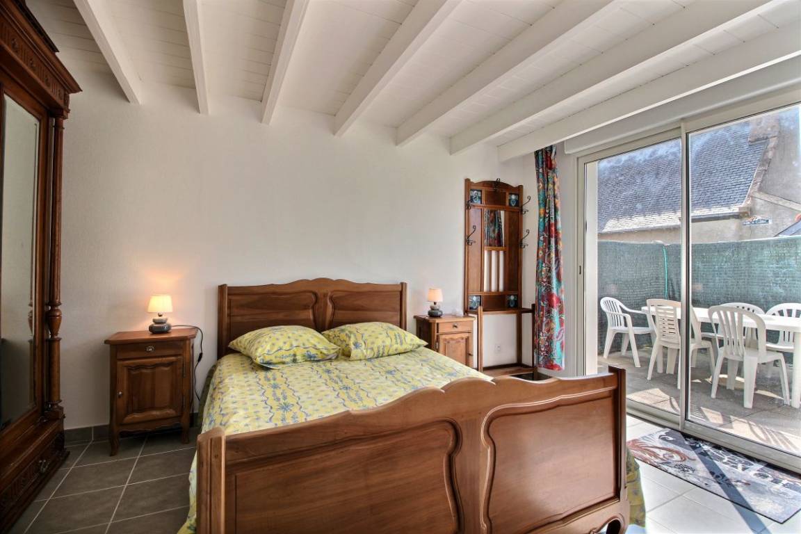 Dieses Ferienhaus bietet: Im Erdgeschoss: Ess-Wohnzimmer mit Holzofen, ausgestattete Einbauküche. In einer Erweiterung: 1 Zimmer (1 Bett für 2 Personen 140x190), Bad mit Dusche und WC. Im Obergeschoss der Erweiterung: 1 Zimmer (1 Einzelbett 90x190). Im Obergeschoss des Hauses: 2 Zimmer (1 Bett für 2 Personen 140x190) (1 Bett für 2 Personen 140x190), WC mit Waschbecken, Ankleide-Ecke. Innenhof von 120 m² zum Abstellen der Fahrzeuge, Garten von 70 m² mit kleiner Terrasse von 9 m². Kleine Veranda von 6 m² am Eingang des Hauses.
