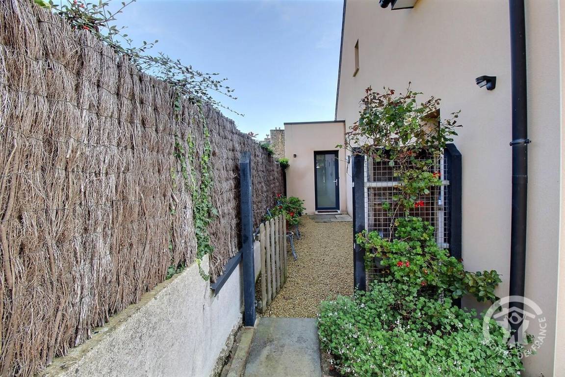 Vom Wohnzimmer aus zugängliche Terrasse mit Gartenmöbeln. Privater Garten von ca. 50 m², eingezäunt.
