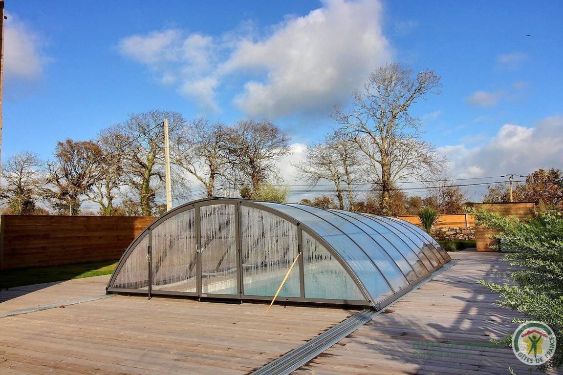 SCHWIMMBAD von 8 x 4 m, Tiefe 1,5 m, mit Salz behandelt, gemeinsam mit 3 anderen Unterkünften auf dem Anwesen, ausgestattet mit einer Kuppel, beheizt, überdacht und von April bis Ende Oktober verfügbar.