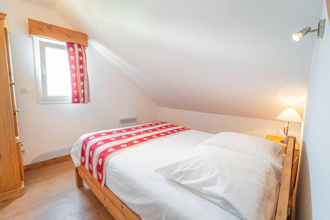„Globalement nous avons beaucoup apprécié notre séjour chez vous. Dans notre chambre le lit deux places grinçait à chaque mouvements. La petite lampe n’avait pas d’ampoule ni la lumière du mur opposé. Il manque globalement du rangement dans les chambres du chalet versus le 6/8 personnes.“