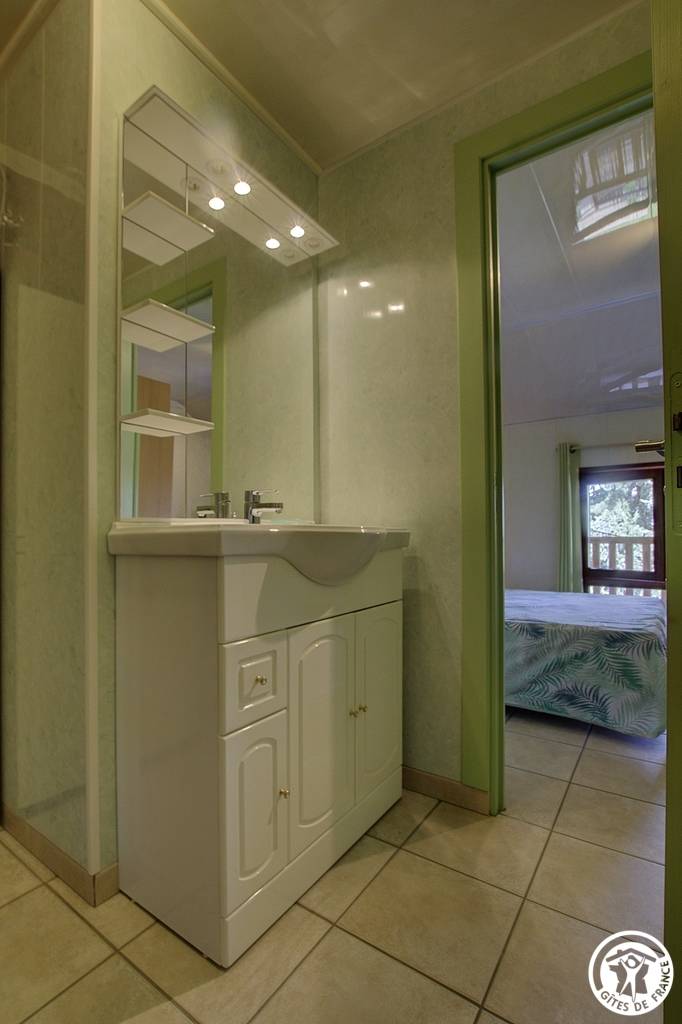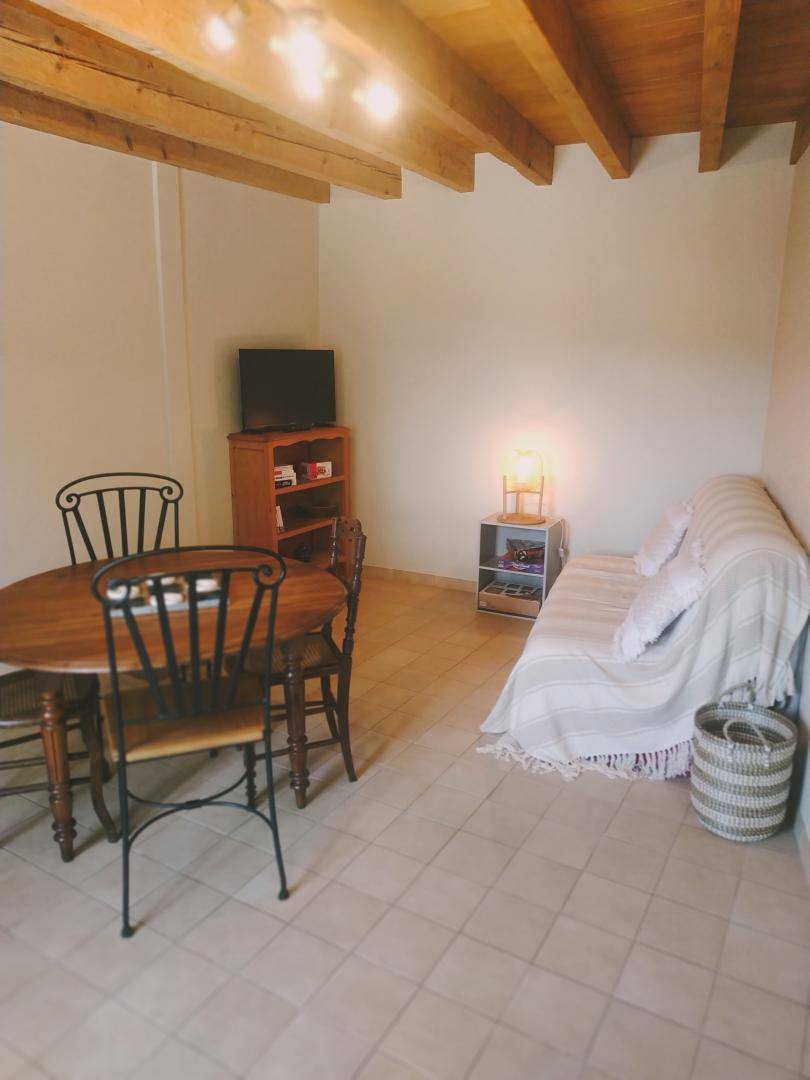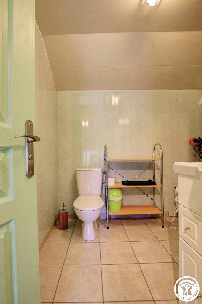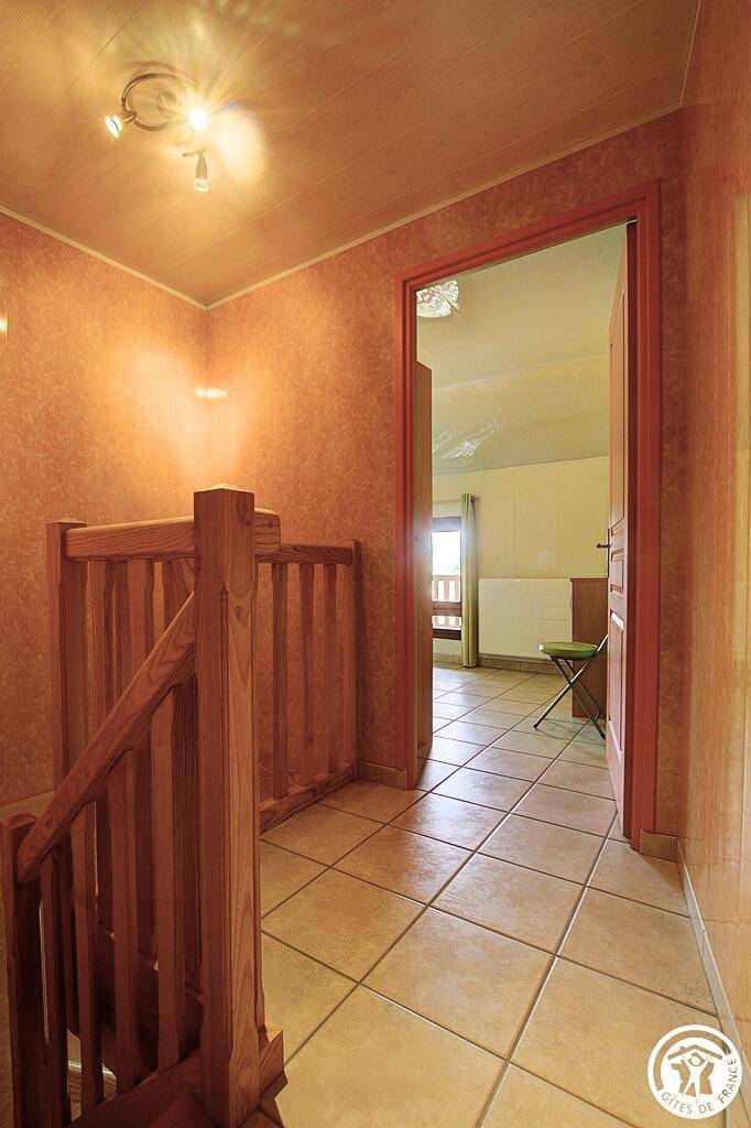 Der Eingang des Ferienhauses führt zu einem gemeinsam mit den Eigentümern genutzten Innenhof. Nach drei Stufen gelangt man über den separaten Eingang in ein Wohnzimmer mit Ruhebereich: Im Erdgeschoss befindet sich ein Schlafzimmer mit einem 140/190 cm breiten Bett. Die voll ausgestattete und funktionale Küche bietet Blick auf den Garten und die Berge. Sie haben Zugang zu einem Badezimmer mit Dusche und Waschbecken. Ein separates WC ist ebenfalls vorhanden. Von der Küche führt eine Treppe zu einem zweiten Schlafzimmer, ebenfalls mit einem 140 x 190 cm breiten Bett, und einem angrenzenden Zimmer mit eigenem Bad, Waschtisch und WC.
