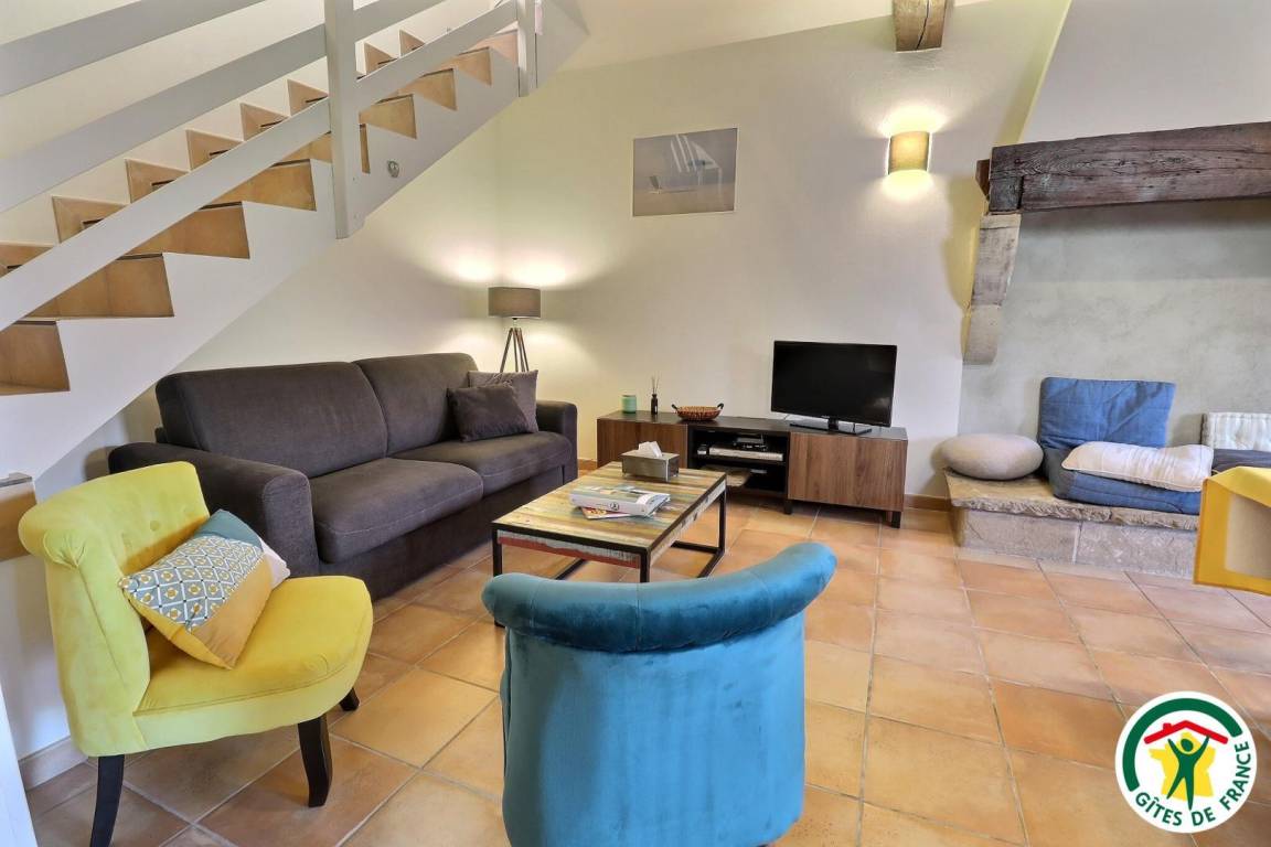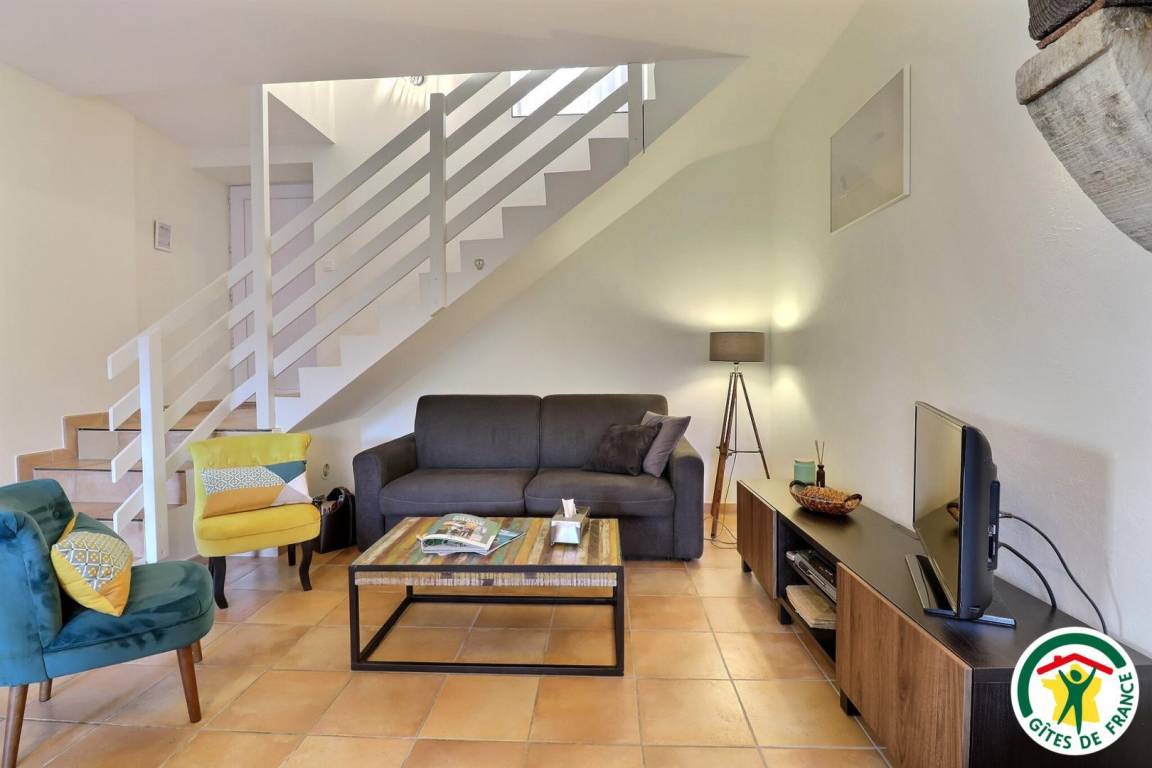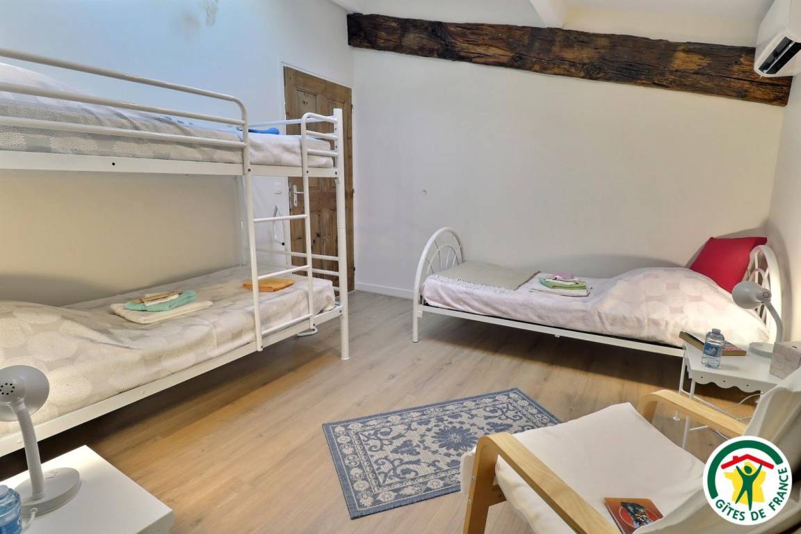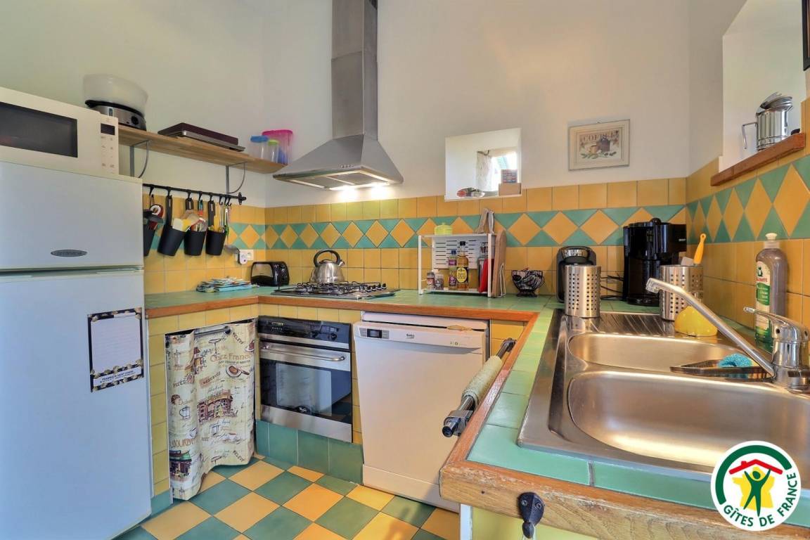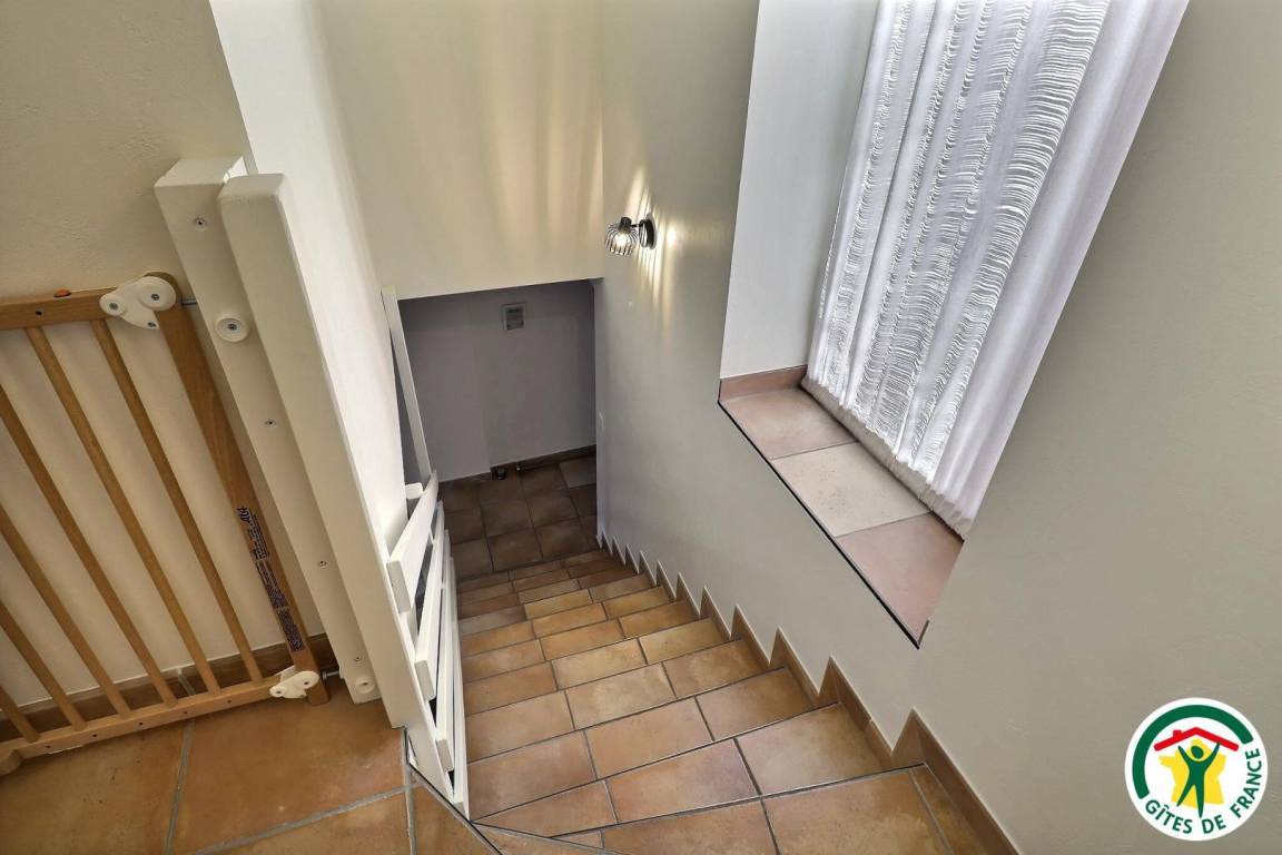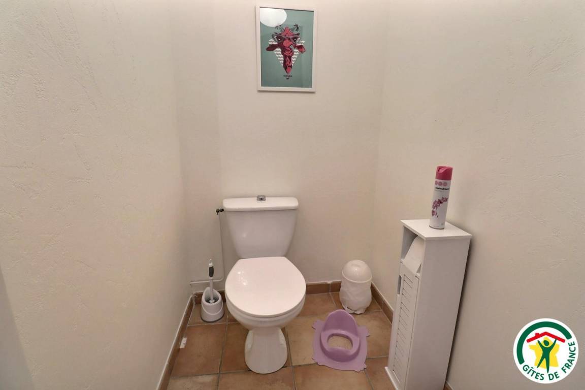 Erdgeschoss: Küche, Ess-/Wohnzimmer, WC. Obergeschoss: 2 Schlafzimmer (1 Bett 160 cm) (1 Bett 90 cm + 2 Betten 90 cm als Etagenbetten), großes Badezimmer mit 2 Waschbecken, separates WC. Swimmingpool, von Mai bis September geöffnet.