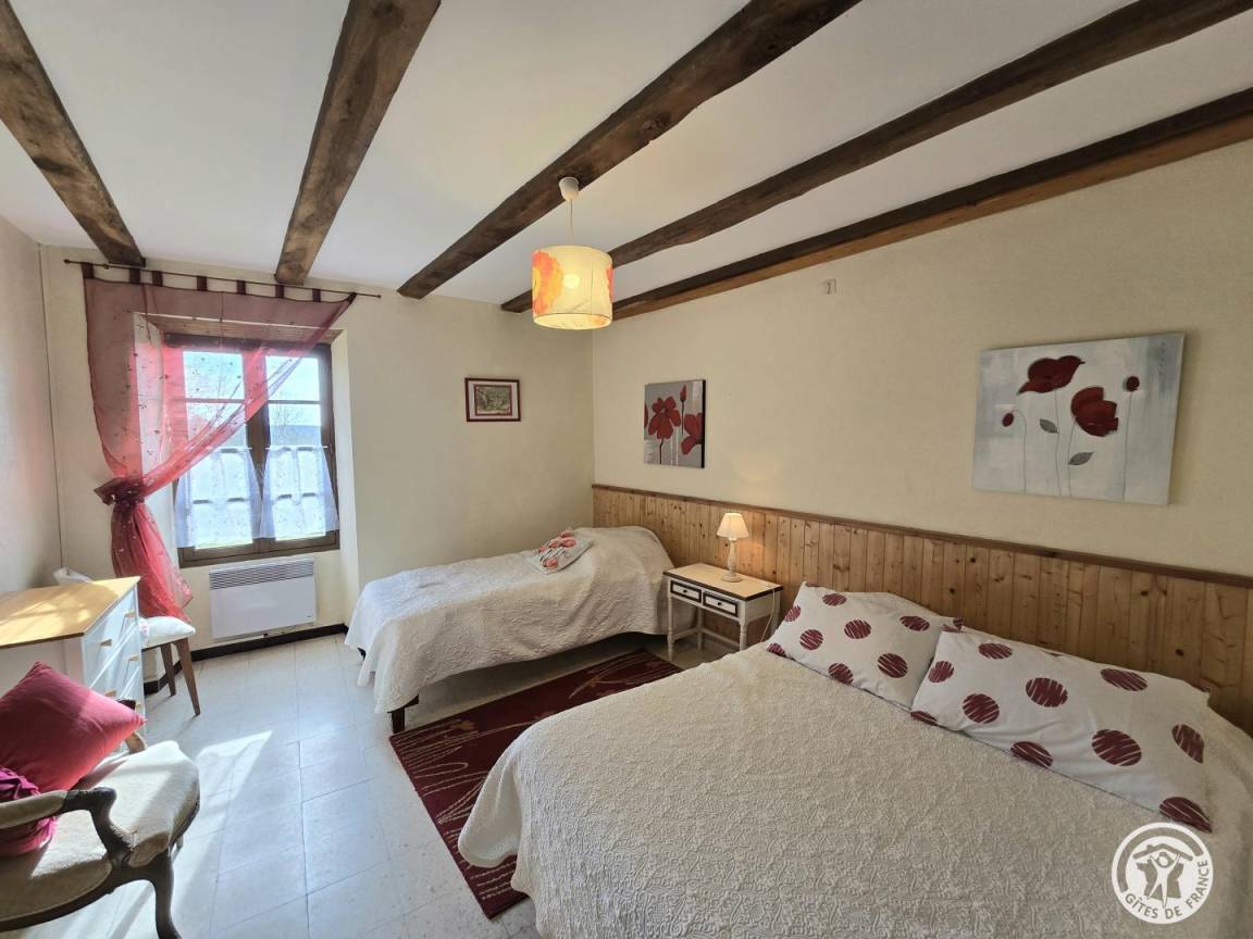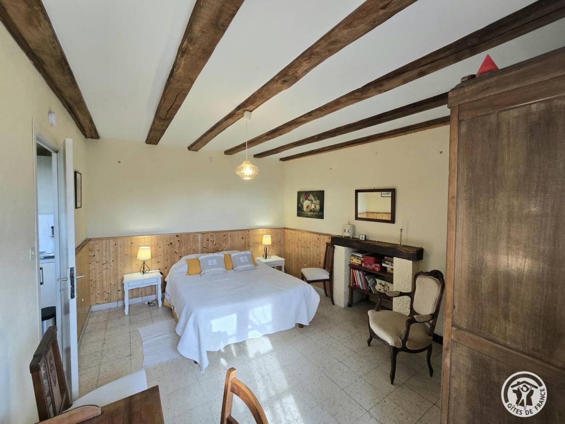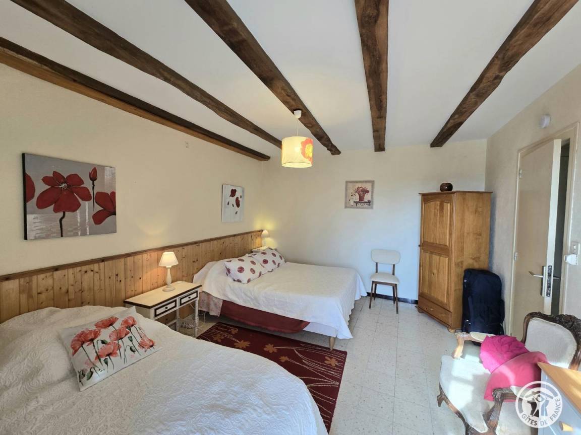 „Dès notre arrivée, nous sommes "attrapés" dans un paysage picturesque, inhérent à la culture en présence cette année, et plongés tout au long du séjour dans ce sentiment bucolique d'être hors du temps, de rêver devant une carte postale et, l'imaginaire faisant son chemin, de nous laisser porter dans le tableau; aidés dans ce rêve éveillé par un joli chevreuil sautant, galopant dans le champs avoisinant ! Au plaisir de retrouver l'an prochain notre gentille propriétaire, son entourage et... Pépito !“