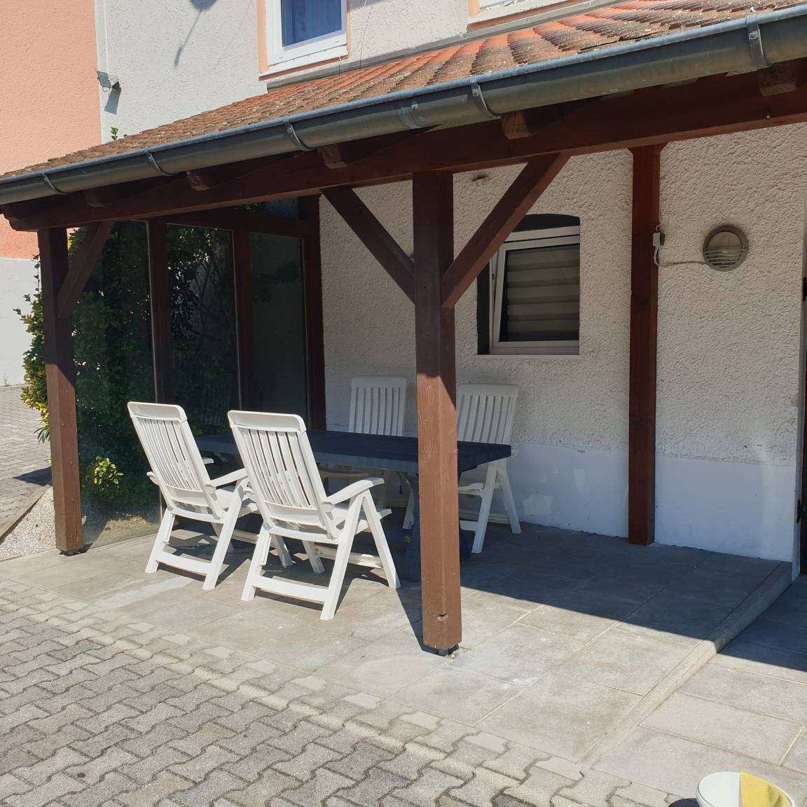 Im Außenbereich gibt es kostenlose Parkplätze sowie eine überdachte Terrasse.