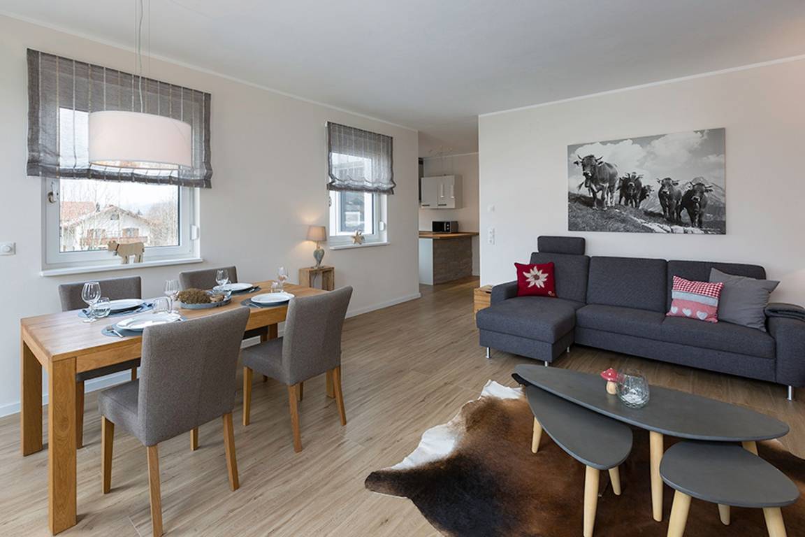 Die traumhafte Ferienwohnung Breitenbergzeit, liegt in idyllischer und ruhiger Lage am Fuße des Breitenbergs in Pfronten. Die großzügig ausgestattete Ferienwohnung macht Ihren Urlaub im Allgäu zu einem ganz besonderen Erlebnis. Diese 3-Zimmer Ferienwohnung mit ca. 78 m² ist perfekt für 2-4 Personen und beinhaltet die KönigsCard. Die hell durchflutende Wohnung Breitenbergzeit bietet 2 Schlafzimmer mit 4 Schlafplätzen, einen separaten Küchenbereich, ein großzügiges Wohnzimmer mit Essbereich und Zugang zum westlich ausgerichteten Balkon mit Bergblick. Ein Badezimmer mit begehbarer Dusche, Handtuchheizung und einer Infrarotsauna sowie ein sep. Gäste WC. Zusätzlich bietet die luxuriöse Ferienwohnung, Fußbodenheizung in der ganzen Wohnung. Ebenso steht den Gästen ein gemeinschaftlicher Saunabereich im Haus zur Verfügung. Im Gebäude befindet sich ein Aufzug, ein Tiefgaragenstellplatz, ein Ski-Schuh Wärmer, gemeinschaftliche Münzwaschmaschinen und Trockner und abschließbare Fahrrad-/Ski-Abstellmöglichkeit.