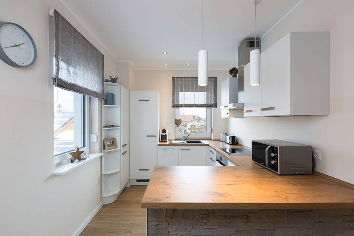 komplett ausgestattete Küche mit Cerankochfeld, Backofen, Geschirrspüler, Mikrowelle, Kühlschrank mit Gefrierfach, Kaffeemaschine, Wasserkocher, Toaster... u.v.m.