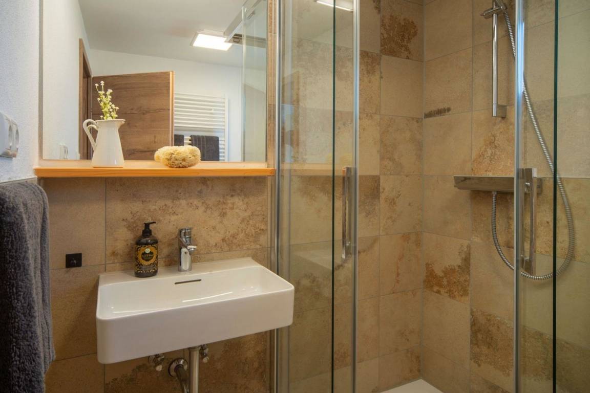 Im Vorderhaus ist eine Hundedusche für Vierbeiner installiert. In nächster Nähe befinden sich tolle Spazierwege und zum Haus gehört auch ein Hang mit großer Wiese.