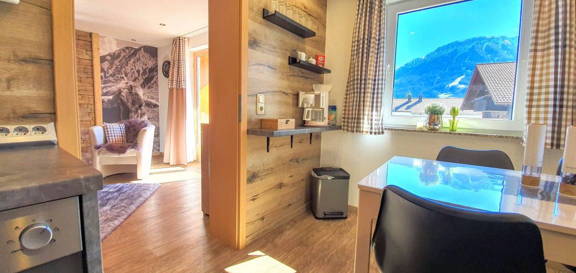 Eine moderne Ferienwohnung mit 2 Zimmern im 1. Obergeschoss mit Bergblick.