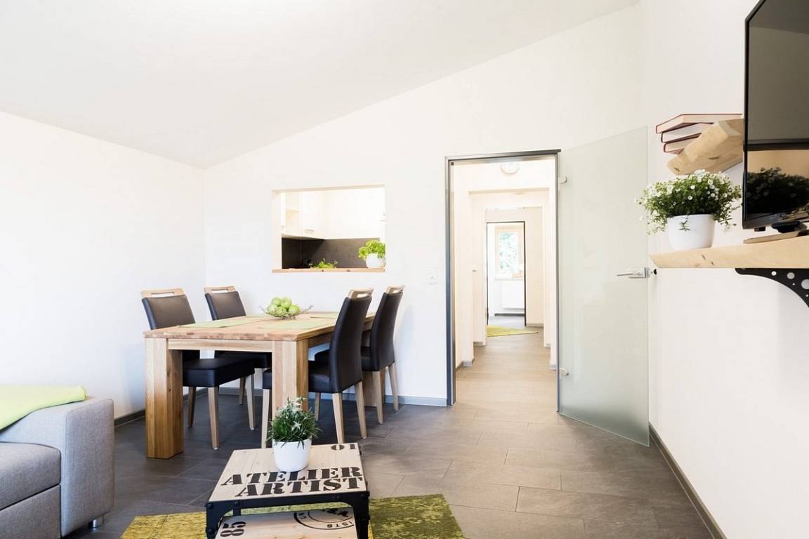 Moderne Wohnkultur mit traditionellem Alpencharme machen diese Ferienwohnung zur perfekten Heimat auf Zeit. Für Sie und Ihre Lieben legen wir höchsten Wert auf eine komfortable Ausstattung. Die wildgrünen Zirbenholzelemente, das hochwertige Boxspringbett, die moderne Küche und natürliche, alpenländische Dekoration sorgen für die einzigartige Wohlfühlatmosphäre die unsere Gäste so schätzen.