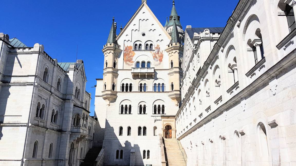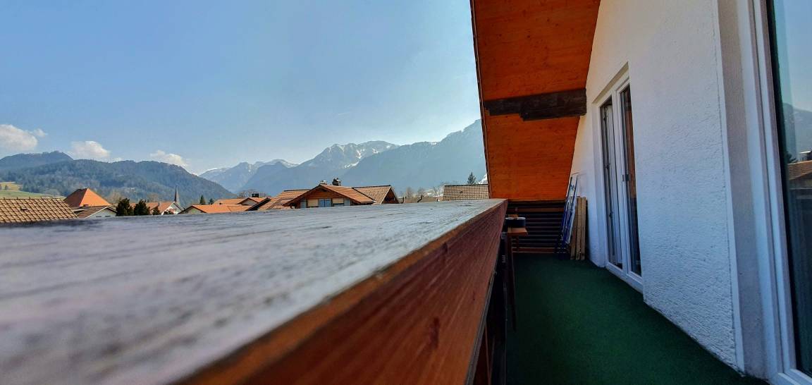 Vom Ost-Balkon können Sie den Blick auf den Falkenstein mit seiner Burg , den Breitenberg, und die Zugspitze genießen.