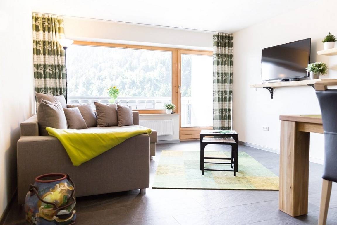 Moderne Wohnkultur mit traditionellem Alpencharme machen diese Ferienwohnung für zwei Personen (weitere Personen auf Anfrage) zur perfekten Heimat auf Zeit. Für Sie und Ihre Lieben legen wir höchsten Wert auf eine komfortable Ausstattung. Die wildgrünen Zirbenholzelemente, das hochwertige Boxspringbett, die moderne Küche und natürliche, alpenländische Dekoration sorgen für die einzigartige Wohlfühlatmosphäre die unsere Gäste so schätzen.