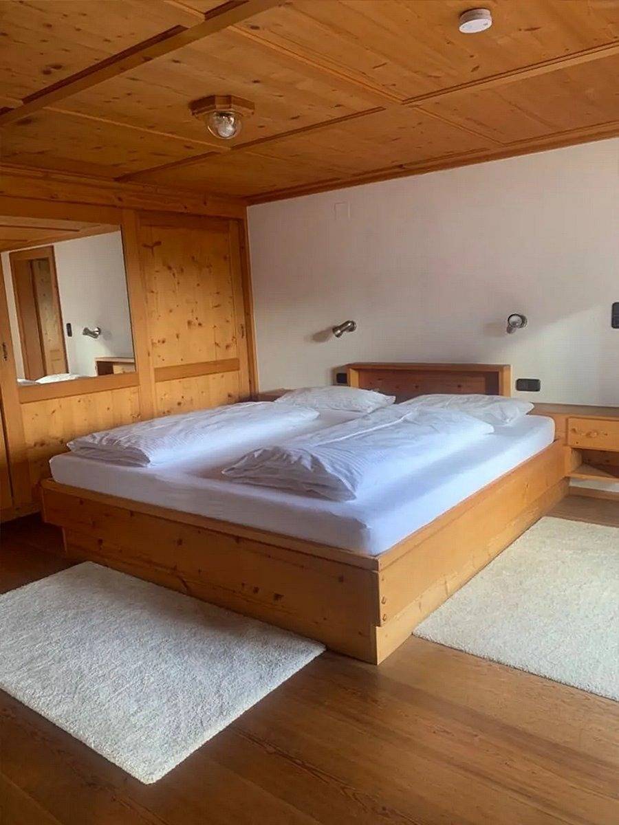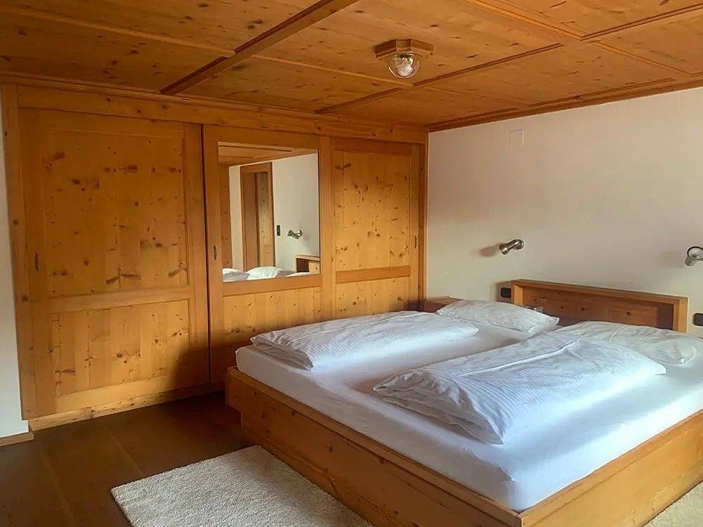 Ein sehr gemütliches Schlafzimmer, fast alles ist aus Holz, von hier aus blickt man direkt auf die Zugspitze. Das Badezimmer ist sehr großzügig und mit einer Sauna ausgestattet. Das WC ist separat im Badezimmer. Im Wohnzimmer gibt es eine Couch die zu einer vollwertigen Schlafcouch mit Matratze umgestaltet werden kann. Außerdem eine, zum Relaxen einladende Bank direkt neben dem Kachelofen. In der Küche gibt es eine Eckbank mit Esstisch, von hier aus hat man den Blick auf die Skipiste in Pfronten.