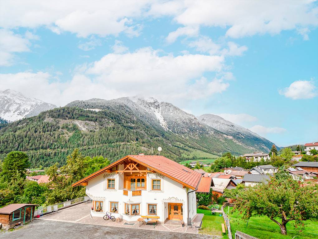 Ort: Pfunds. Ruhige Hanglage. Idealer Ausgangspunkt für Wanderungen und Ausflüge inmitten der Bergwelt des Dreiländerecks Österreich ? Italien ? Schweiz. Ortsmitte, Freibad 700 m. Reschen, Nauders 13 km.