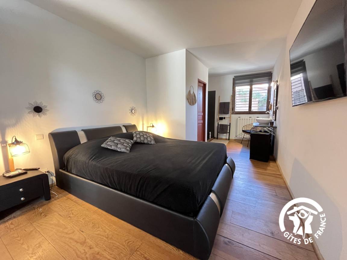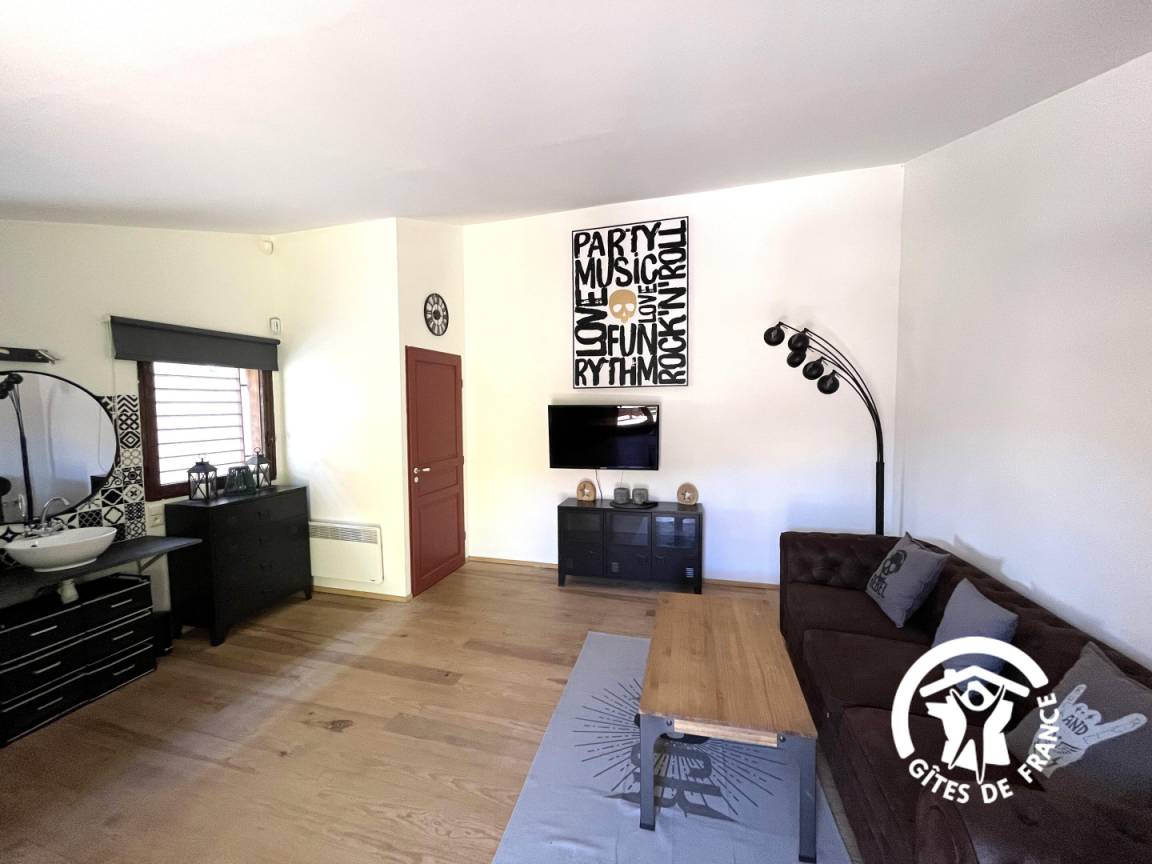 „Gîte spacieux, confortable, bien situé géographiquement. Cependant, il y aurait quelques petites choses à améliorer: Nombre de bippers pour le portail insuffisant, idem pour les clés, seulement un parking public autorisé, nombre de transats insuffisant, des verrous de portes qui ne ferment pas, manque d'armoires de rangement dans les chambres. Et mauvaise literie dans la chambre annexe.“