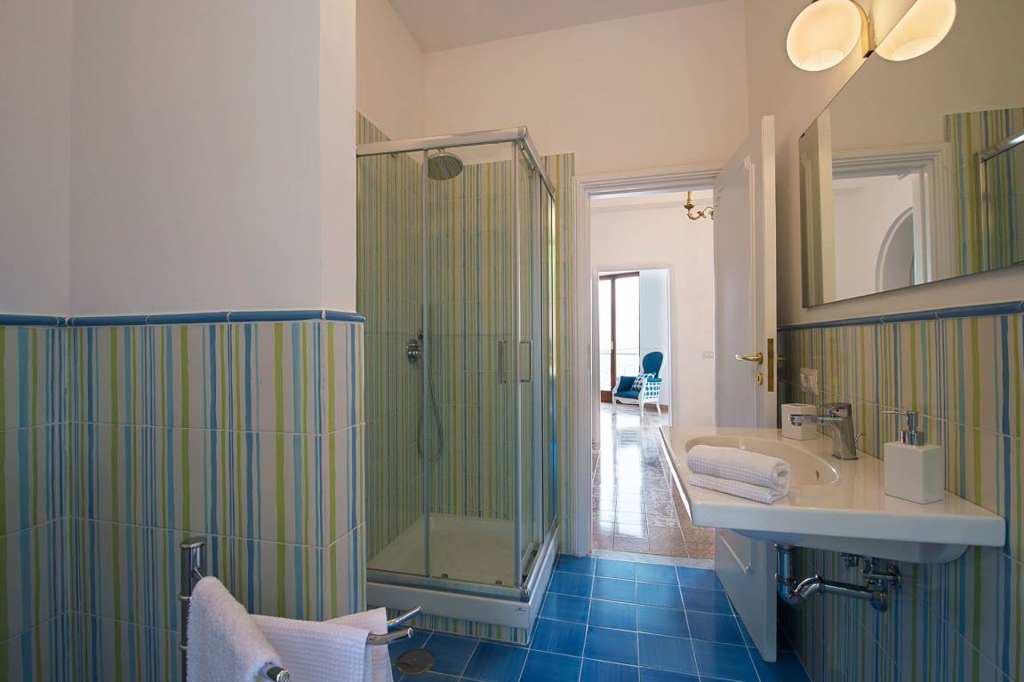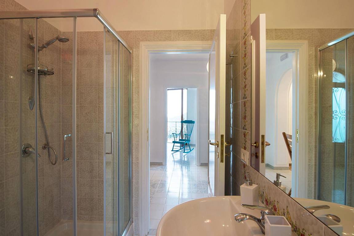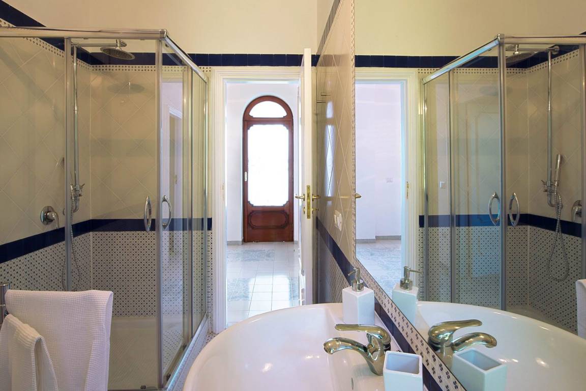 Das erste Obergeschoss verfügt über eine zweite vollausgestattete Küche mit Geschirrspülmaschine, Kühlschrank, Gefrierschrank, Kochfeld, Ofen und italienischer Kaffeemaschine sowie Wi-Fi-Verbindung. Auf dieser Ebene befinden sich 2 weitere Schlafzimmer, jeweils mit Doppelbett, Wi-Fi, Klimaanlage und privatem Ausgang zur Terrasse. Die 2 Bäder auf diesem Geschoss sind jeweils mit Waschbecken, Toilette, Bidet, Dusche und Haartrockner ausgestattet.