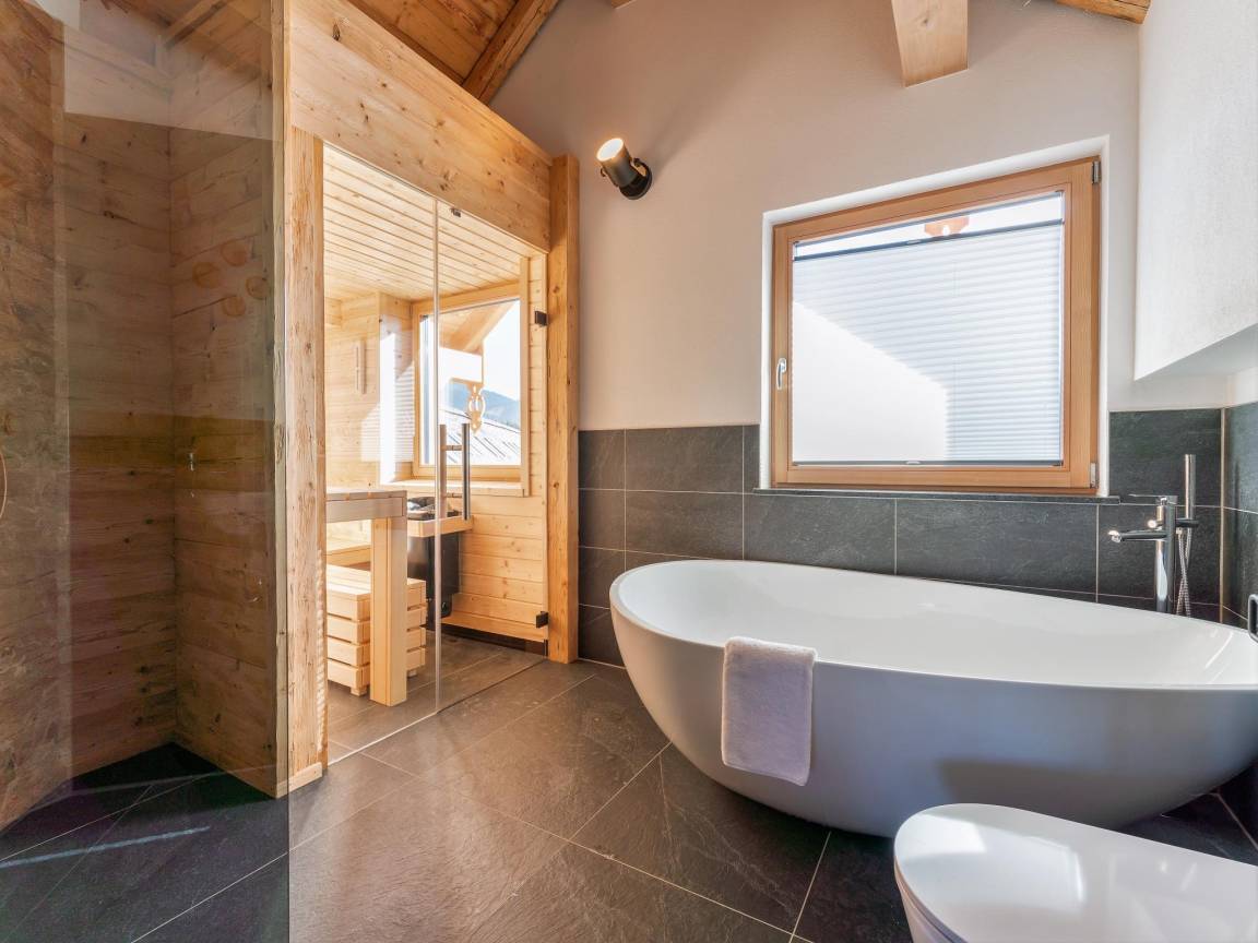 Zum Entspannen ist auch ein eigener Sauna-/Wellnessraum vorhanden, wo Sie nach einem aktiven Tag in den Bergen relaxen können