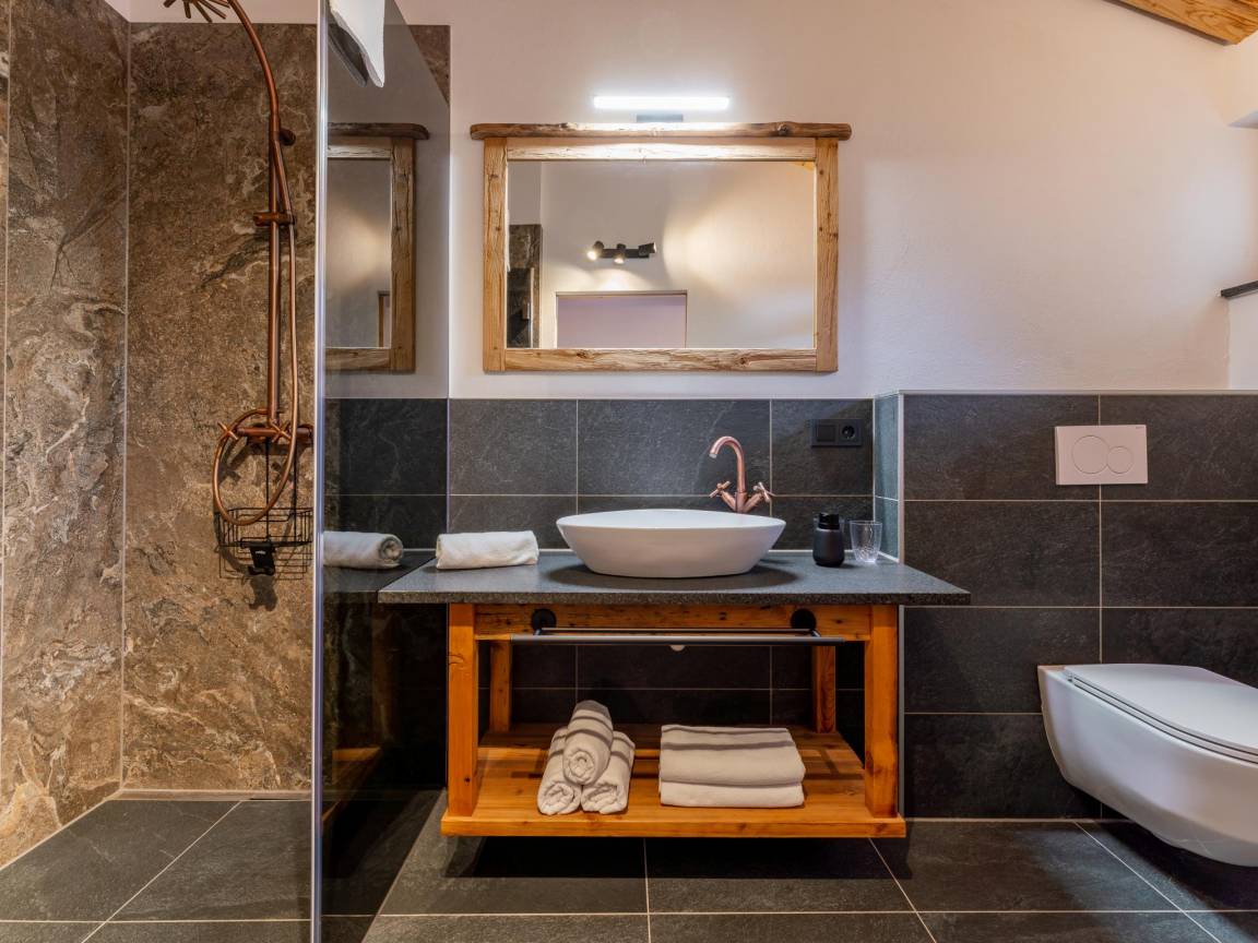 „Eine schöne, noch fast neue Wohnung, ausgestattet mit allem Luxus. Bei der Ankunft war die Wohnung makellos. Die ganze Wohnung strahlt eine österreichische Atmosphäre aus: Viel Holz, Schafsfelle auf der Couch am Esstisch und ein schöner gemütlicher Kamin. Ich habe in 1 der schönen Betten mit guten Matratzen wunderbar geschlafen. Jedes Schlafzimmer hat ein eigenes Bad mit Dusche und Toilette. Es gibt auch eine schöne Sauna: Empfehlenswert nach einem Tag Mountainbiking in den Bergen, herrlich entspannend! Kurzum: Top-Wohnung, auf jeden Fall sehr zu empfehlen!“