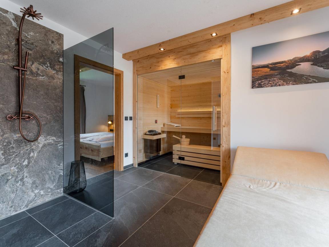 In der 1. Etage: 2x Schlafzimmer mit Doppelbett(180 x 200 cm), TV(smart TV) , Badezimmer mit Dusche, Waschbecken, Toilette , Ruheraum mit Badewanne, Dusche, Sauna, Liegestühle , Balkon