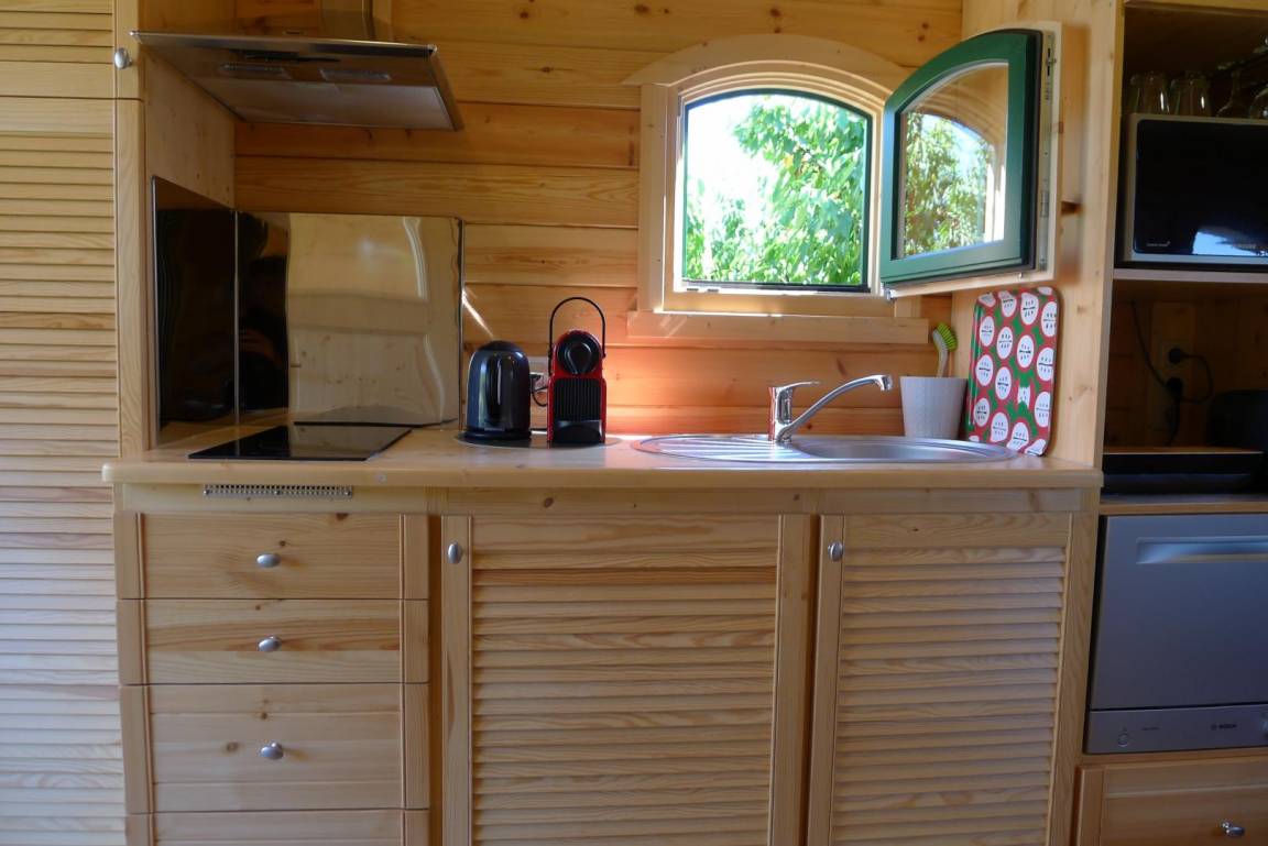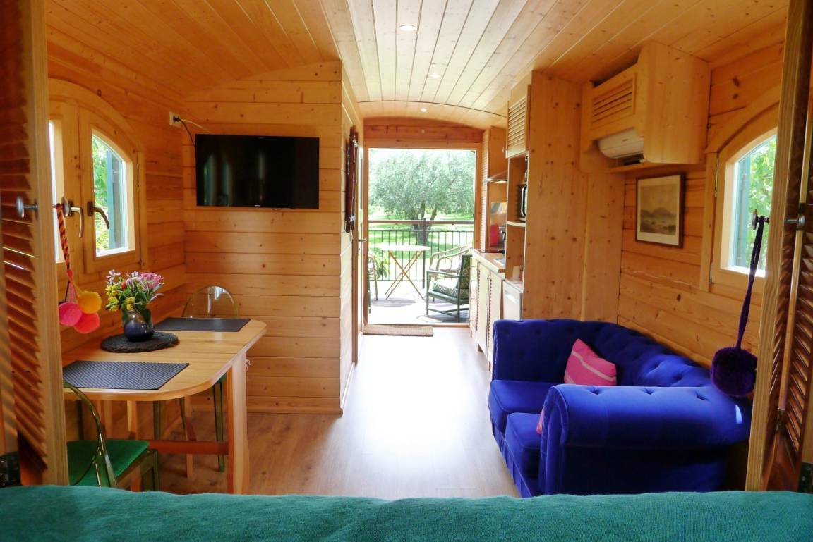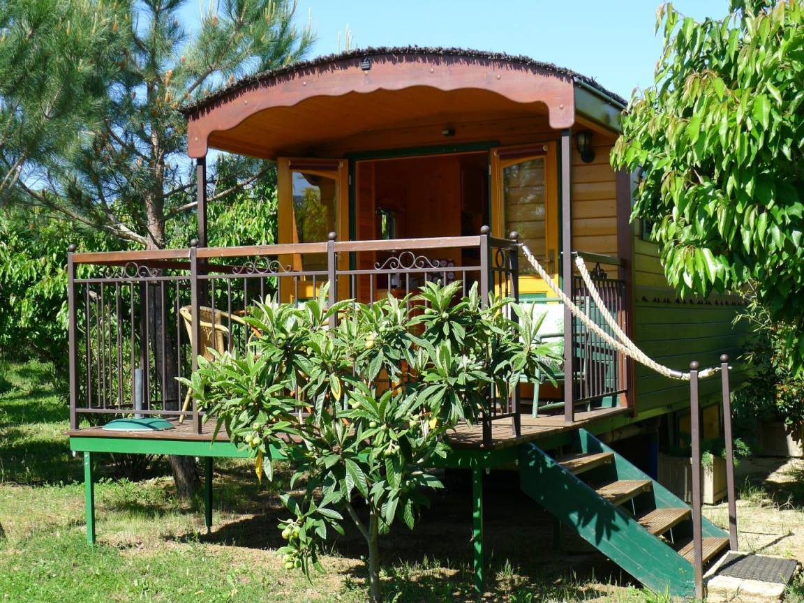 Haben Sie Lust auf ein ganz besonderes Erlebnis? Machen Sie Urlaub in unseren Holzbauwagen, die Komfort und Originalität miteinander vereinen. Die Bauwagen stehen auf einem mit Bäumen und Blumen bepflanzten, 2 ha großen Grundstück in außergewöhnlich guter Lage (uneingeschränkte 360-Grad-Sicht). In dieser Oase der Ruhe, umgeben von Weinbergen und zwischen Oliven- und Kirschbäumen können Sie in stiller und intimer Atmosphäre Erholung finden. über nur wenige Stufen zugänglich: Küchenzeile, Sofa, Tisch und Stühle, 1 Bett 160 x 200 cm, Bad mit Dusche und WC. Angenehme, 9m² große Terrasse. Nutzen Sie die zahlreichen Freizeitmöglichkeiten vor Ort: den beheizten Swimmingpool (15 x 7 m), den Tennisplatz, den Golfplatz (6 Löcher, Putten), Tischfußball und Billard, Riesen-Schachspiel, Boule-Platz und selbstverständlich die Außenküche und zwei Außensitzgelegenheiten im Schatten.