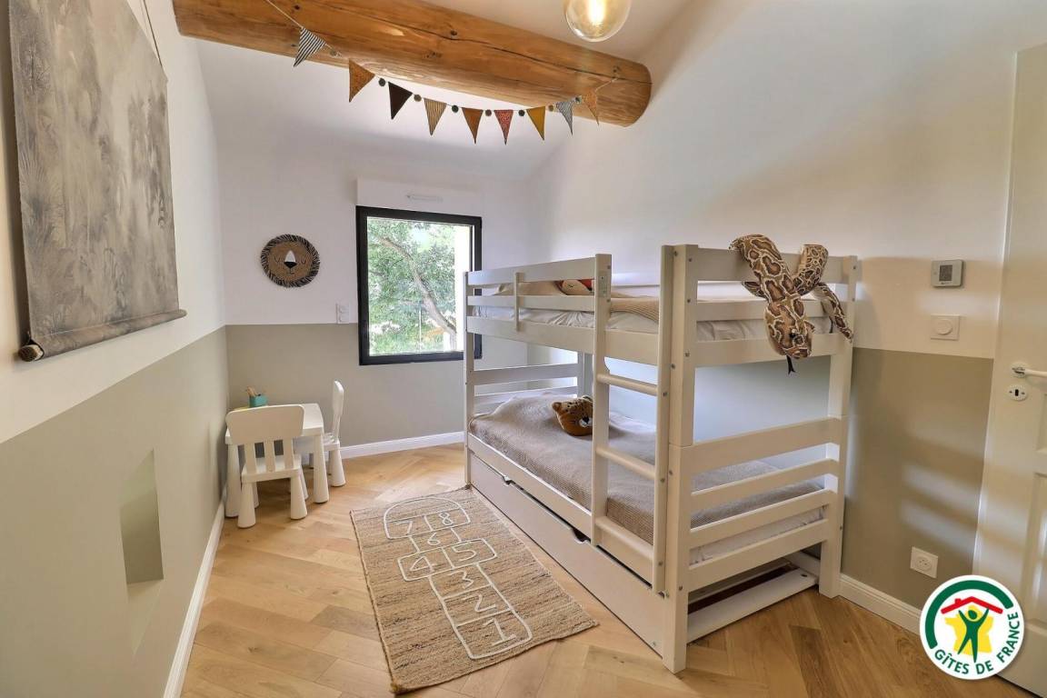 Die 125 m² der Hütte sind wie folgt aufgeteilt. Im Erdgeschoss: klimatisiertes Wohnzimmer (moderne und voll ausgestattete Küche, Wohnzimmer mit Erkerfenster, Wandfernseher, Spiele), ein klimatisiertes Schlafzimmer (160 x 200 cm großes Bett, Glastür und Rollladen, eigenes Bad mit ebenerdiger Dusche, freistehender Badewanne, WC), ein Abstellraum/Spülküche mit separatem WC. Obergeschoss: 3 klimatisierte Schlafzimmer (160 x 200 cm) (160 x 200 cm) (2 Etagenbetten 90 x 190 cm), Duschraum/WC. Im Außenbereich und zu Ihrer alleinigen Nutzung: Südterrasse mit schattenspendender Pergola aus Kokosfasern, von der aus Sie einen privilegierten Blick auf den Swimmingpool genießen können, Gas- und Elektroplancha, überdachtes Poolhaus mit Entspannungslounge, Swimmingpool mit 12-Jet-Spa (Maße 10,5 x 4,1 m, Tiefe 1,5 m, durch Rollladen gesichert, angemessen beheizt und je nach Wetterlage von Mai bis Allerheiligen geöffnet), Pétanque-Platz, Darts, Hängematte, Schaukel, Parkplatz vor Ort, Grundstück vo