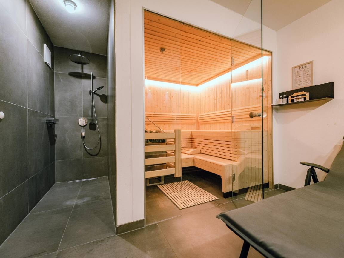 Keller: Ruheraum mit Dusche, Sauna, Toilette, Liegestühle , Skiabstellraum