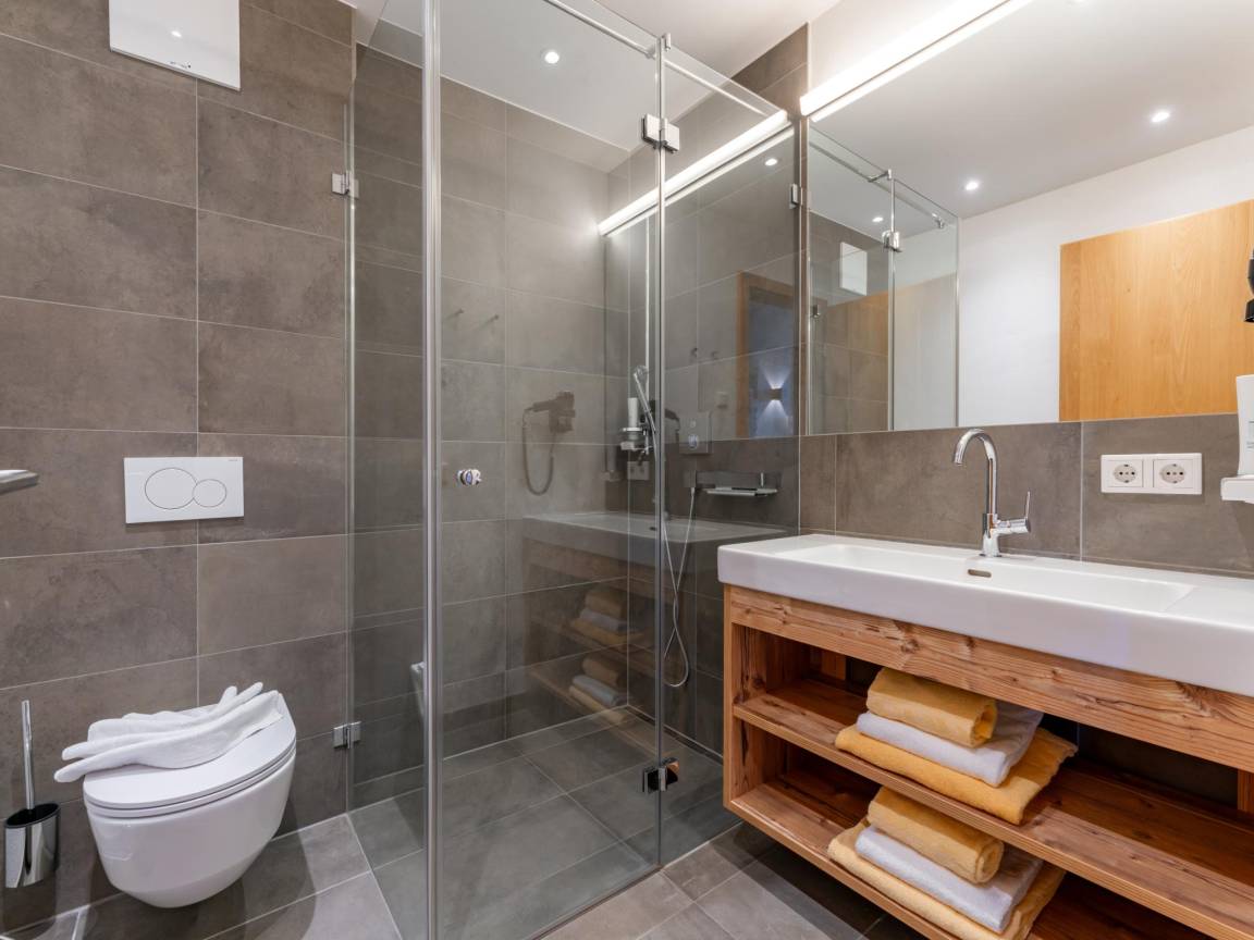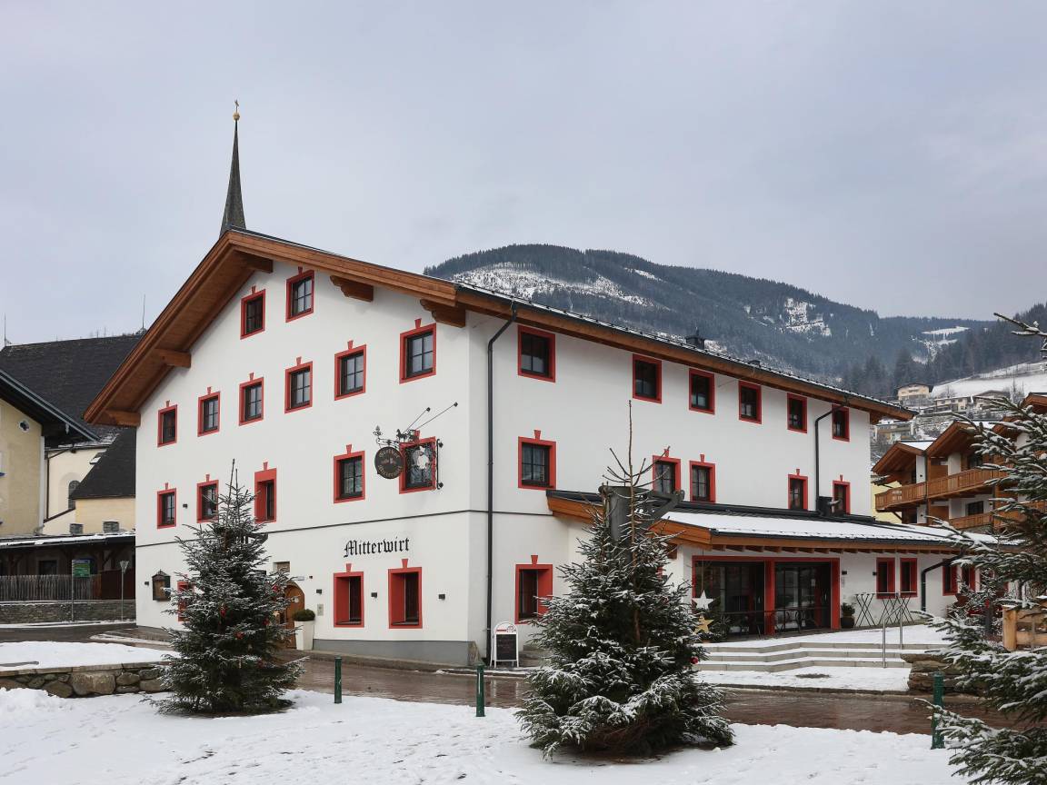 Hausbeschreibung : Die Tauern Suites Mitterwirt liegen im Zentrum von Piesendorf, einem typisch österreichischen Dorf, in dem sich Authentizität und Charme im kleinen Rahmen zu einem unvergesslichen Urlaubserlebnis verbinden. Nach einem Tag in den Bergen können Sie auf dem Balkon entspannen. Folgende Gemeinschaftseinrichtungen stehen zur Verfügung: Wellness mit 2 Saunen, Fitnessraum, Skiabstellraum, Parkplatz, Fahrradabstellraum, Spielplatz, Wäscherei und ein Restaurant, in dem Sie gute Speisen genießen können