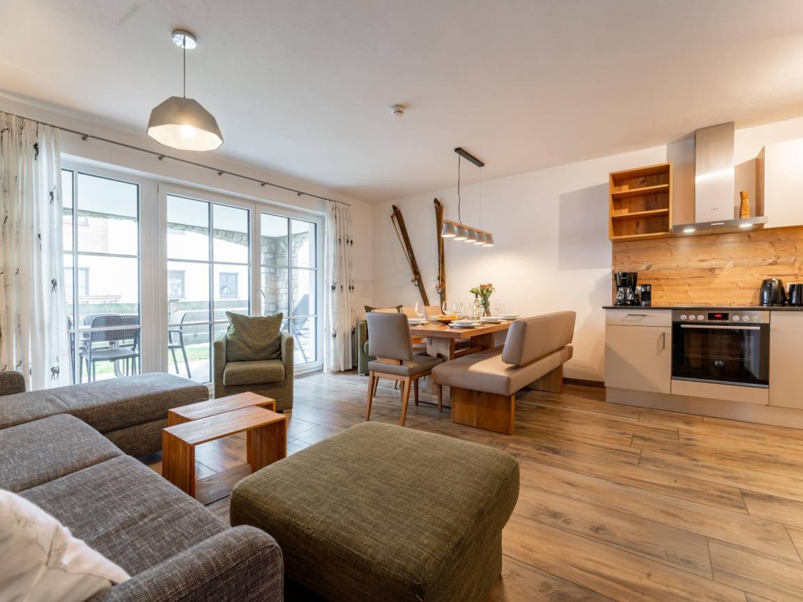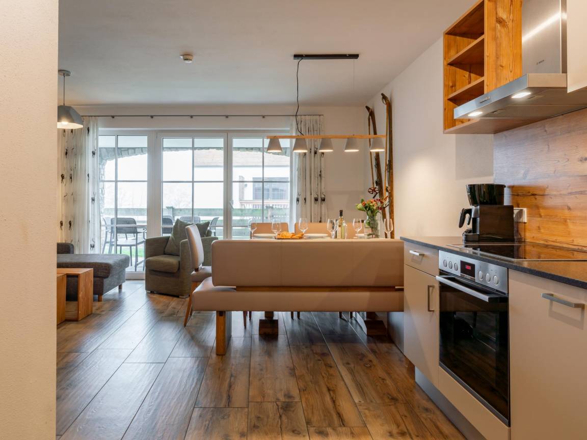Hausbeschreibung : Die Tauern Suites Mitterwirt liegen im Zentrum von Piesendorf, einem typisch österreichischen Dorf, in dem sich Authentizität und Charme im kleinen Rahmen zu einem unvergesslichen Urlaubserlebnis vereinen. Die Ferienwohnung liegt im Erdgeschoss. Entspannen Sie sich auf der Terrasse oder nutzen Sie nach einem aktiven Tag den gemeinsamen Fitness- und Wellnessbereich mit 2 Saunen. Zu den weiteren Einrichtungen gehören: Skiabstellraum, Parkplatz, Fahrradabstellraum, Spielplatz und ein Restaurant