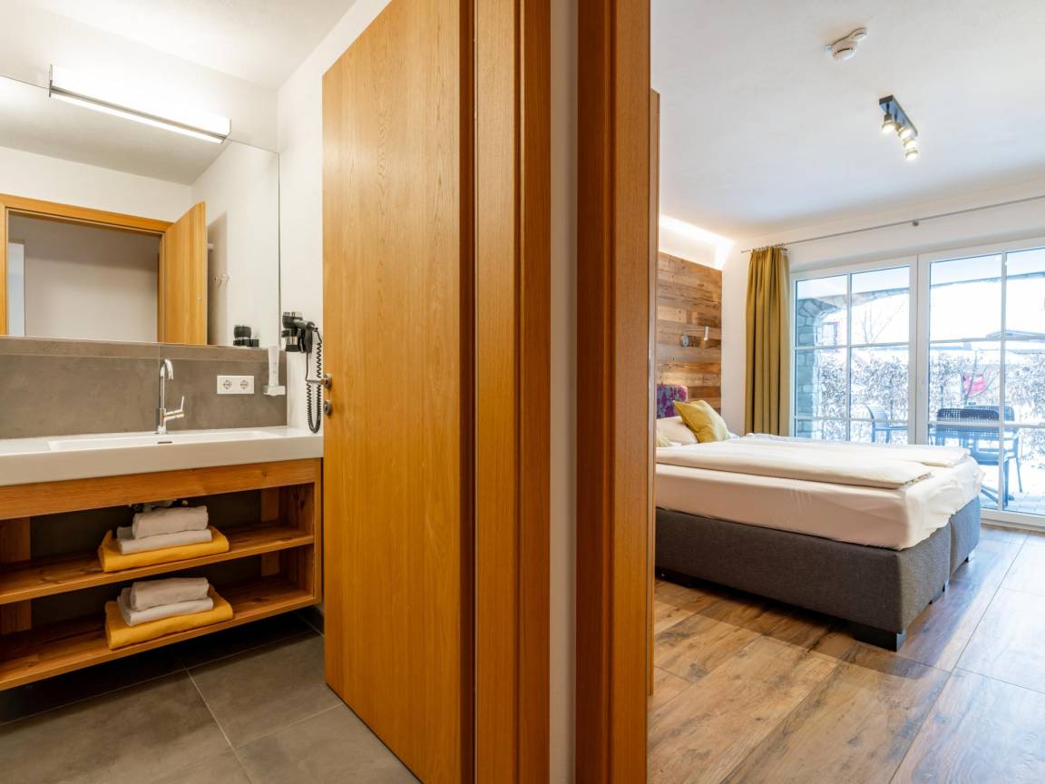 Hausbeschreibung : Die Tauern Suites Mitterwirt befinden sich im Zentrum von Piesendorf, einem typisch österreichischen Dorf, in dem sich Authentizität und kleiner Charme zu einem unvergesslichen Urlaubserlebnis vereinen. Entspannen Sie nach einem erlebnisreichen Tag im gemeinsamen Wellness mit Saunen oder genießen Sie auf der Terrasse. Mit einem Privatparkplatz in der Garage, einem Skiabstellraum und Zugang zum Fitnessraum ist alles vorhanden, was Sie brauchen. Es gibt auch einen Spielplatz und ein Restaurant