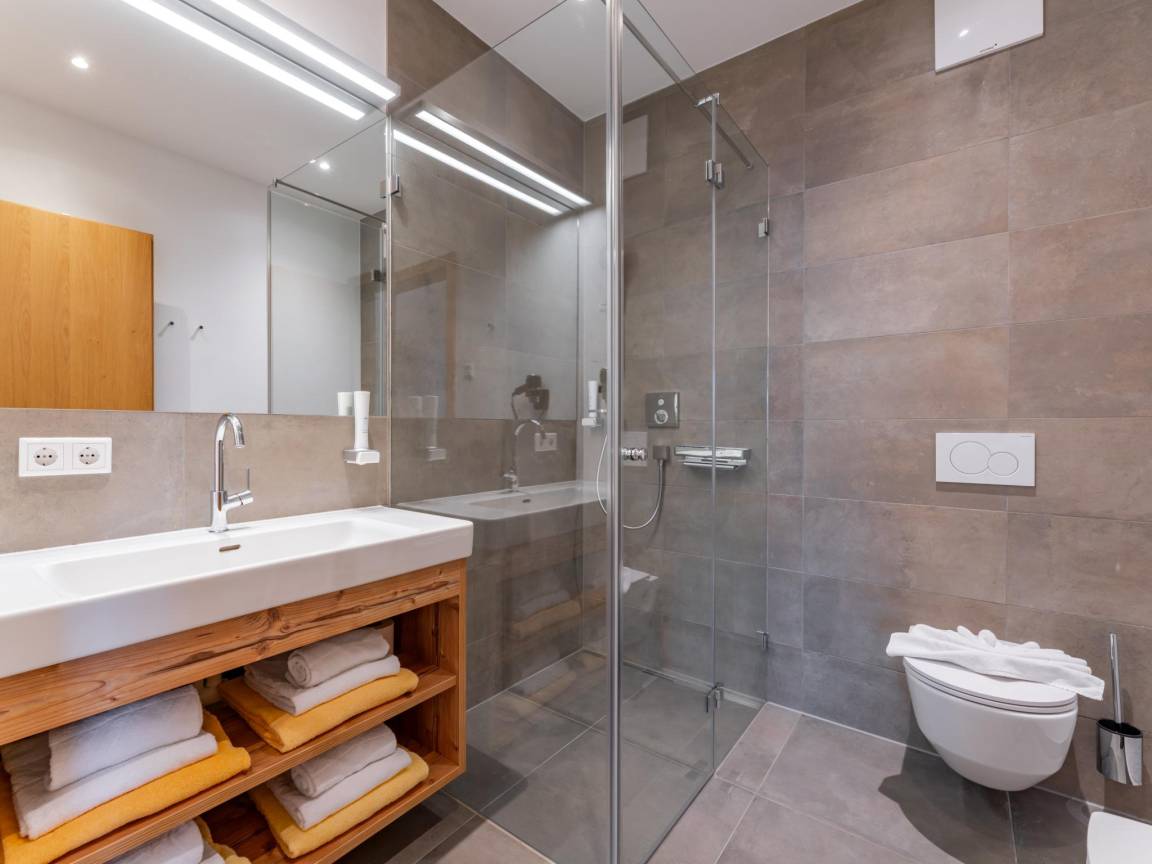 Nebengebäude: Fitnessraum(Gemeinschaftliche Nutzung mit anderen Gästen), Ruheraum(Gemeinschaftliche Nutzung mit anderen Gästen) mit 2x Dusche, 2x Sauna, 2x Toilette , Skiabstellraum(Gemeinschaftliche Nutzung mit anderen Gästen, über gemeinsamen Eingang) mit Skischuhheizung , 2x Wäschetrockner(Gemeinschaftliche Nutzung mit anderen Gästen, gegen Gebühr), 2x Waschmaschine(Gemeinschaftliche Nutzung mit anderen Gästen, gegen Gebühr), Fahrradabstellraum(Gemeinschaftliche Nutzung mit anderen Gästen)