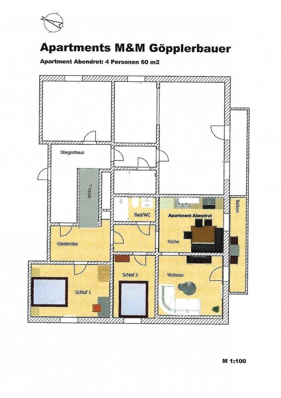 Apartment Abendrot befindet sich im 2. Stock, genau gegenüber Apartment Morgensonne und ist perfekt für Familien.