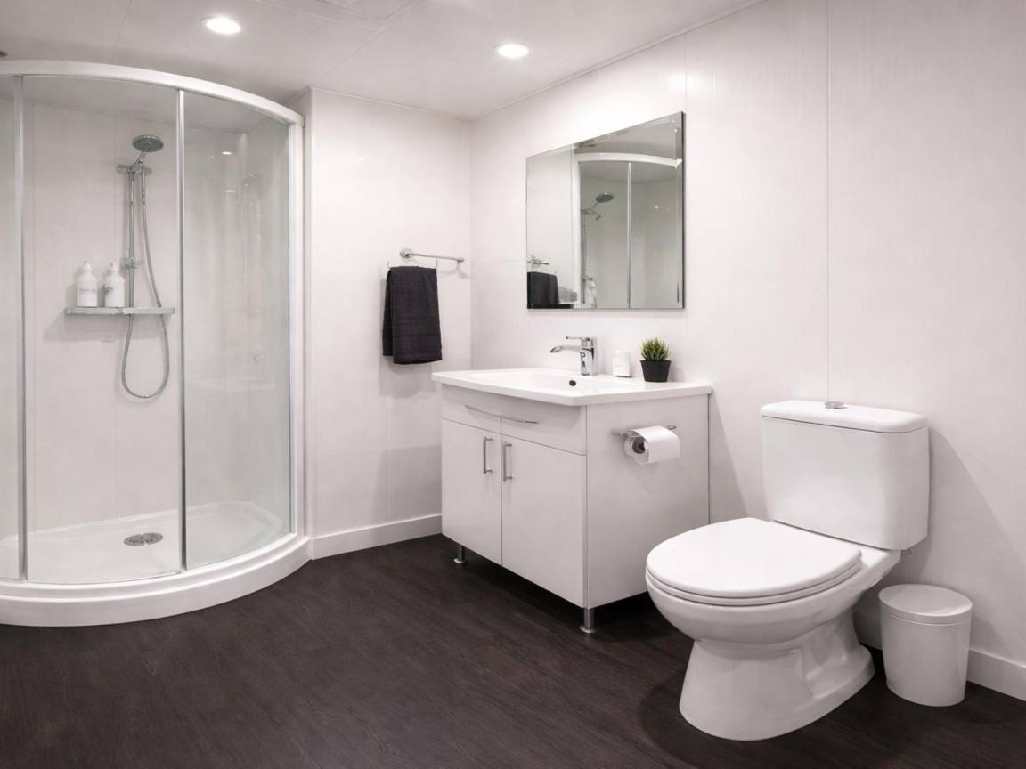 In der 1. Etage: Schlafzimmer mit Badezimmer mit 2x Einzelbett(Synthetikbettdecke, Spannbetttuch, 90 x 200 cm), Dusche, Waschbecken, Toilette , Schlafzimmer mit Badezimmer mit 2x Einzelbett(Synthetikbettdecke, Spannbetttuch, 90 x 200 cm), Dusche, Waschbecken, Toilette , Schlafzimmer mit Badezimmer mit 2x Einzelbett(Synthetikbettdecke, Spannbetttuch, 90 x 200 cm), Dusche, Waschbecken, Toilette , Schlafzimmer mit Badezimmer mit 2x Einzelbett(Synthetikbettdecke, Spannbetttuch, 90 x 200 cm), Dusche, Waschbecken, Toilette , 2x Kinderbett (ohne Bettwäsche)